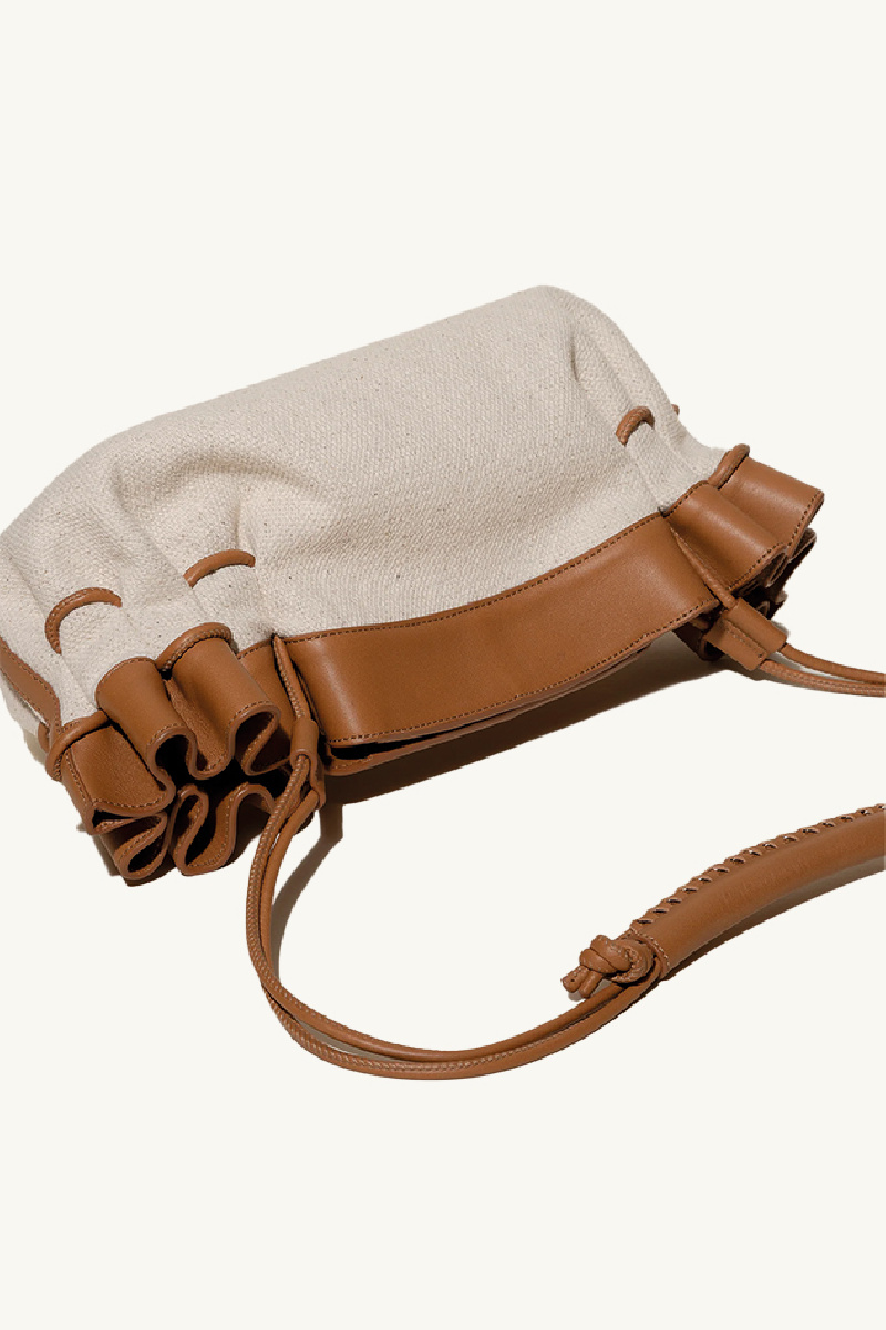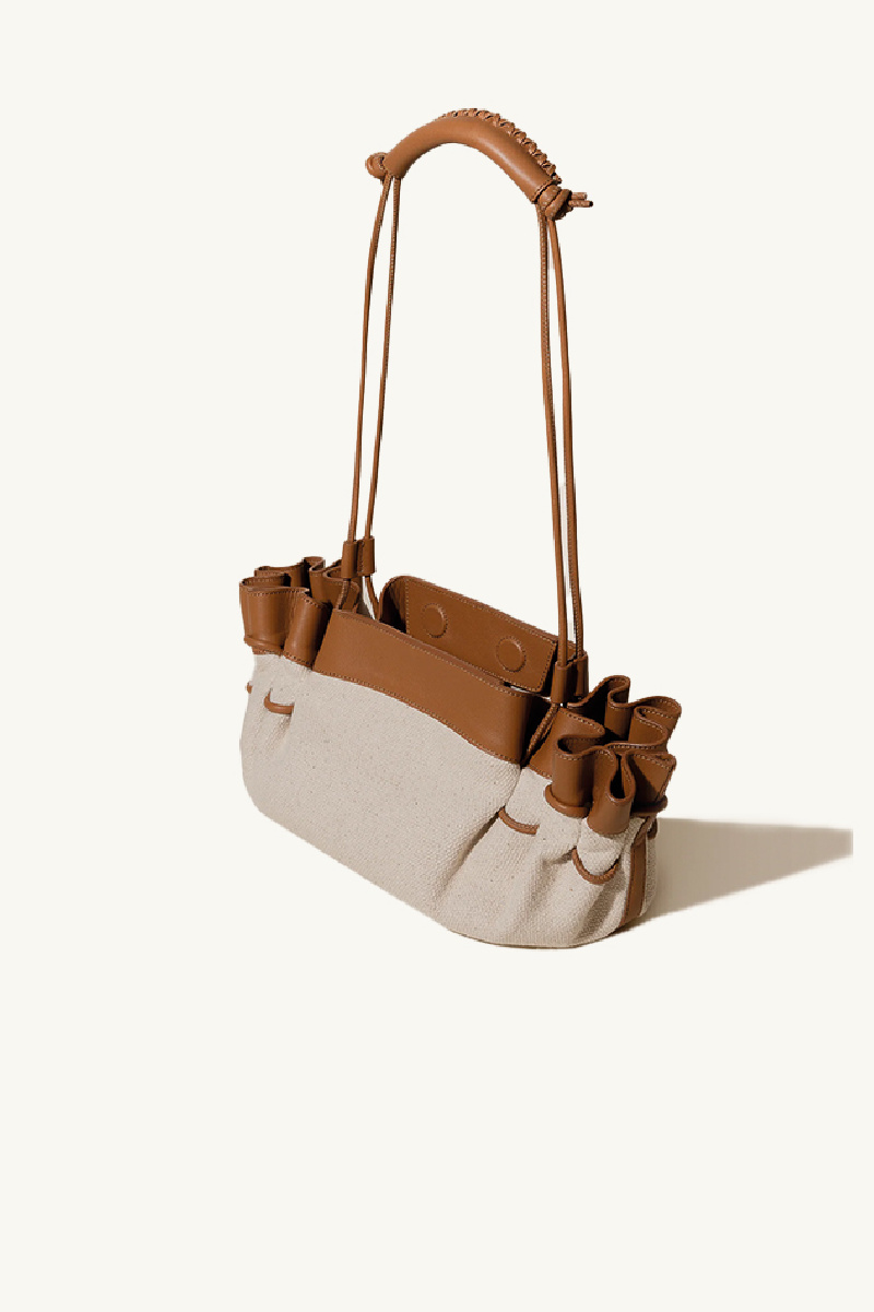 Hand/shoulder-bag made of thick ecru canvas and smooth brown calfskin, from the brand Hereu.