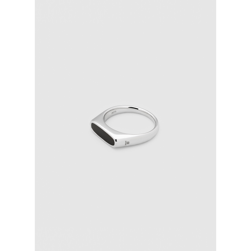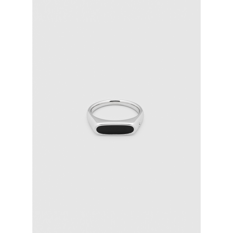Tom Wood Chevalière, fine 925 sterling silver, white rhodium plated with custom cut and inlaid black Onyx stone.