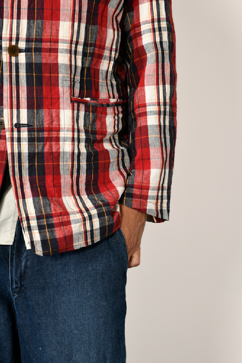 Madras check jacket in red, blue and white made of a cotton and linen blend, by Sage de Cret.