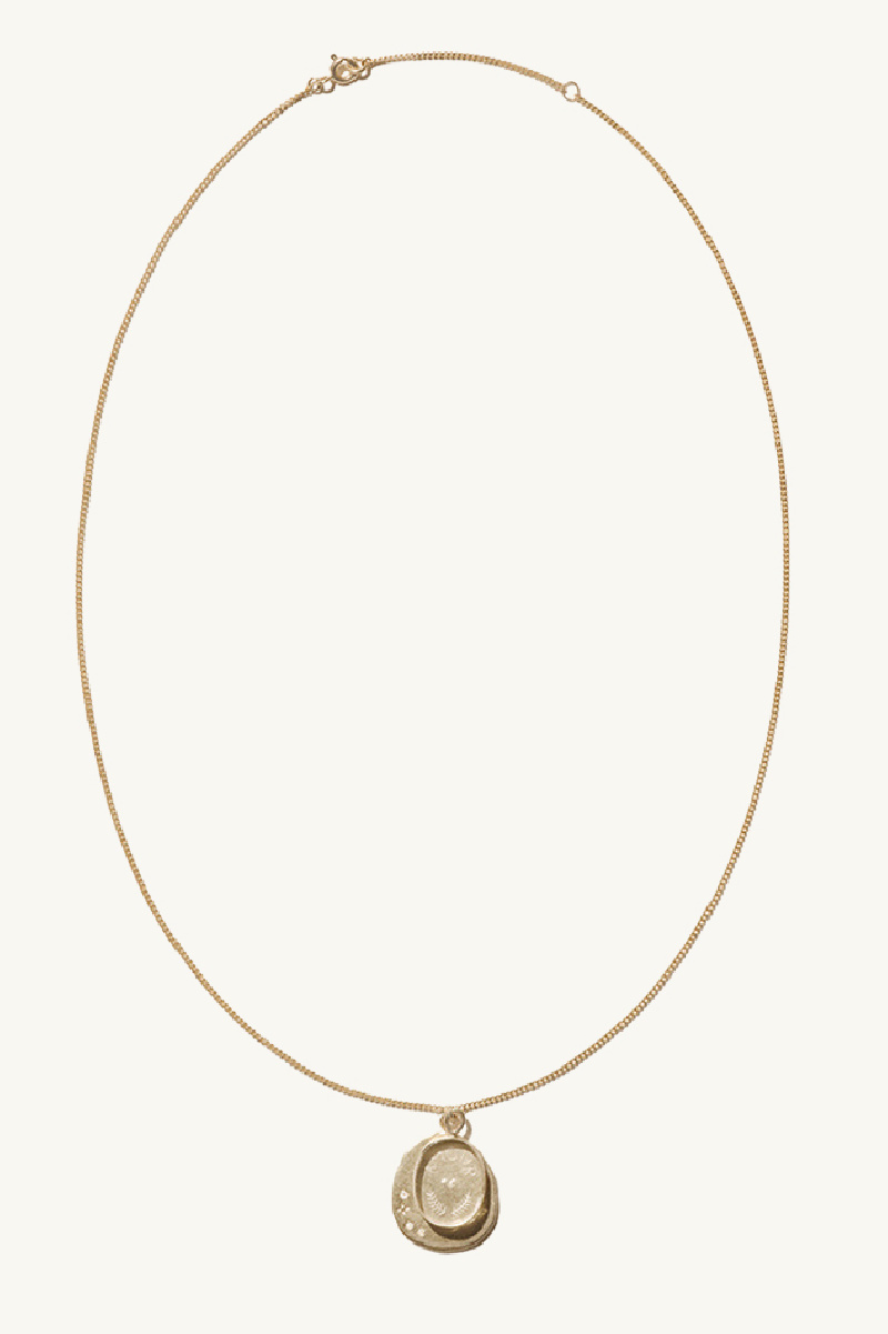 Necklace in gold 9 carats, rock crystal and diamonds from the brand Pascale Monvoisin. Hand engraving.