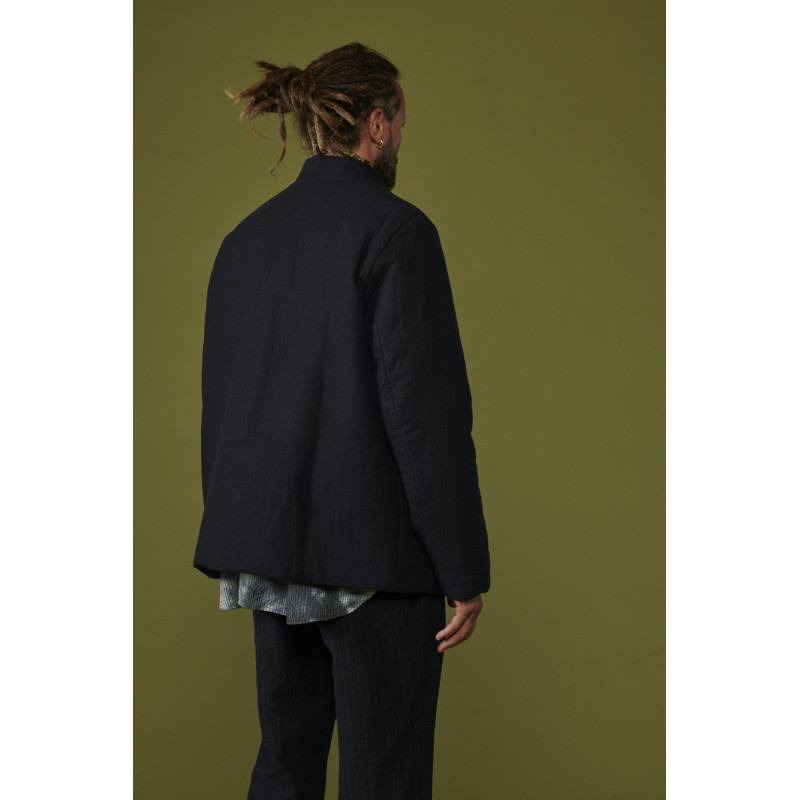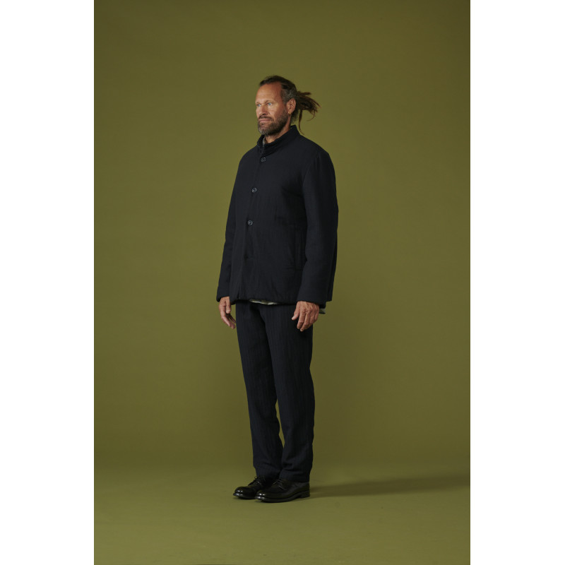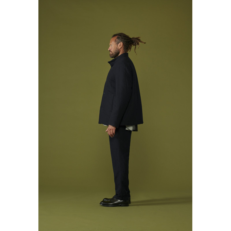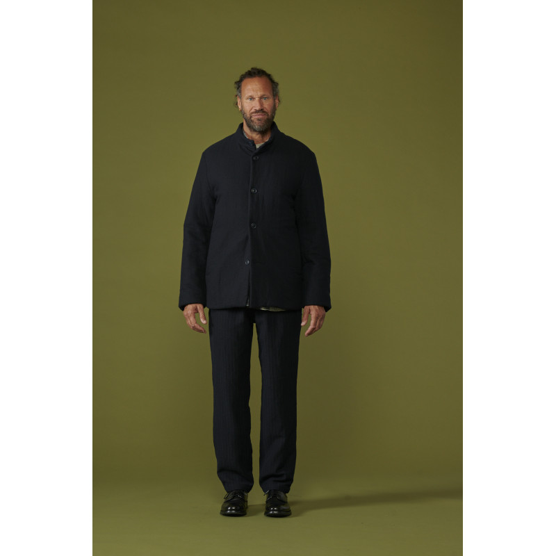 Casey Casey felted jacket, navy blue, straight cut, long sleeves, with patch pockets on the sides, button closure, slightly high collar, the felted fabric has been washed and rewashed bringing its uniqueness and value.