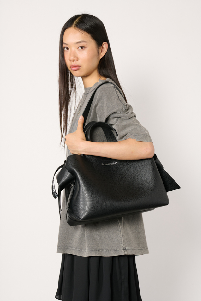 Adjustable Musubi shoulder bag in black grained calf leather, from Acne Studios.