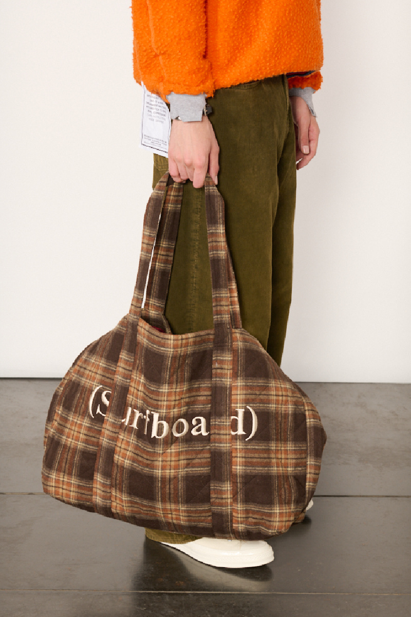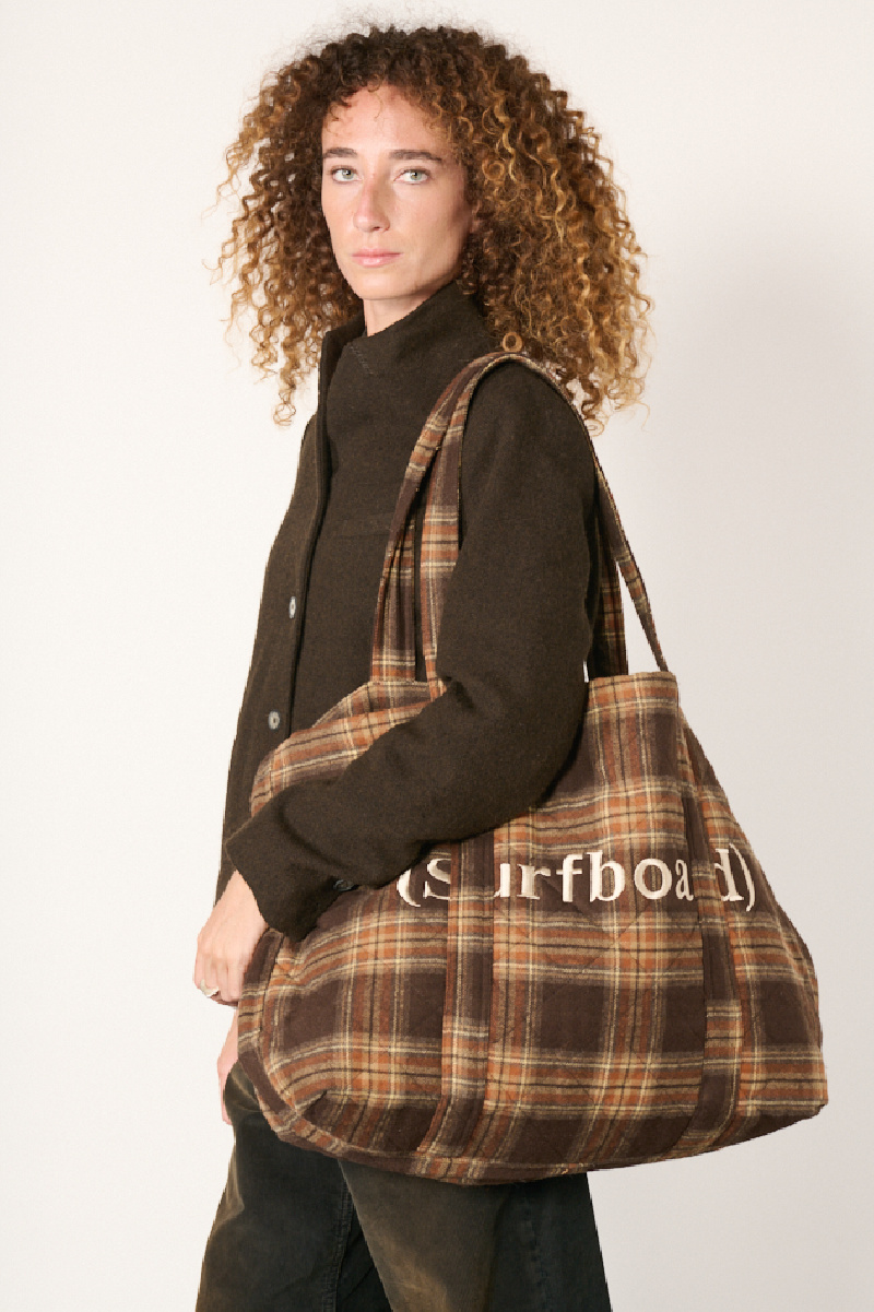 Brown quilted flannel tote bag from Stockholm Surfboard Club.