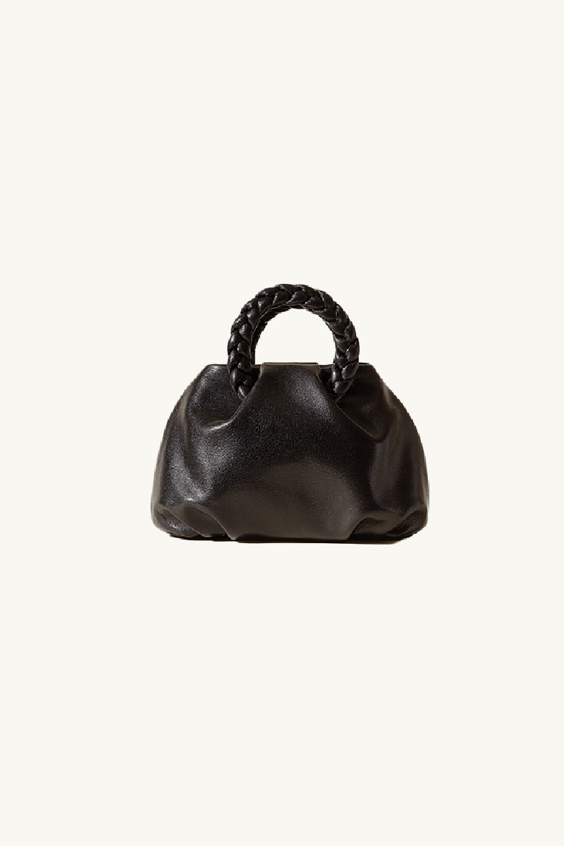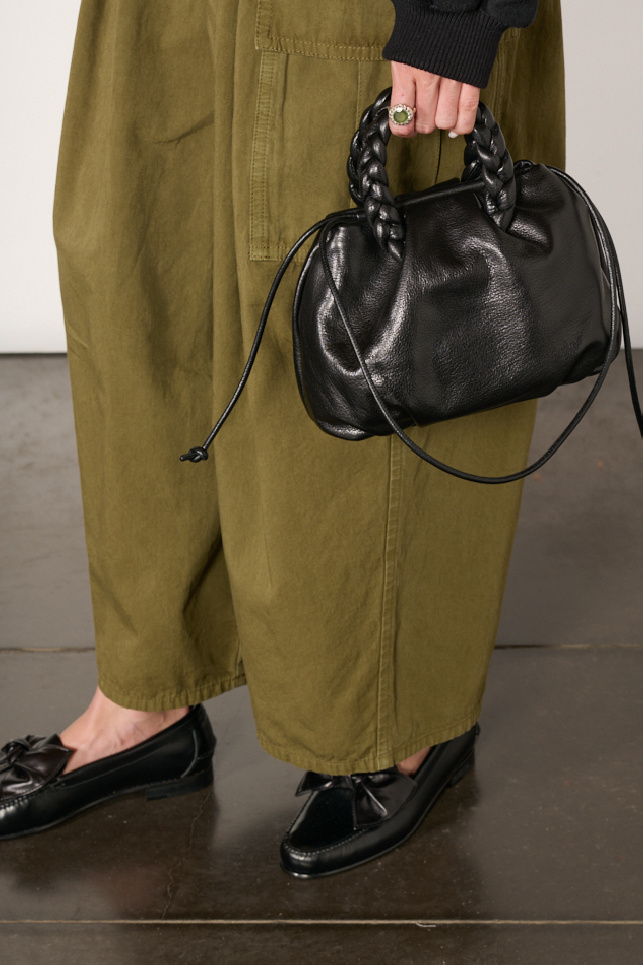 Handbag made from soft, shiny lambskin leather, lined with organic cotton canvas, by Hereu.