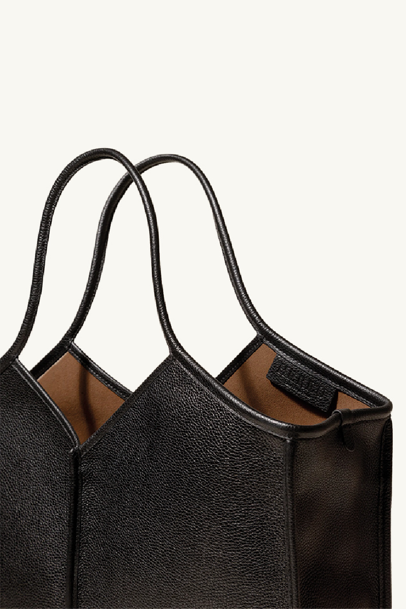 Tote bag made from grained calf leather, lined with suede calf leather, by Hereu.