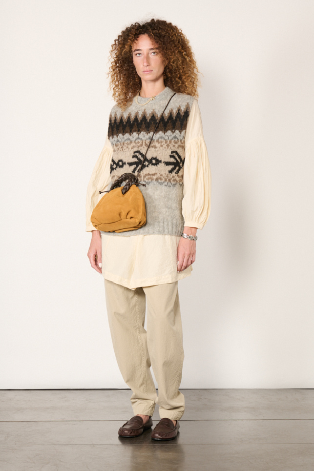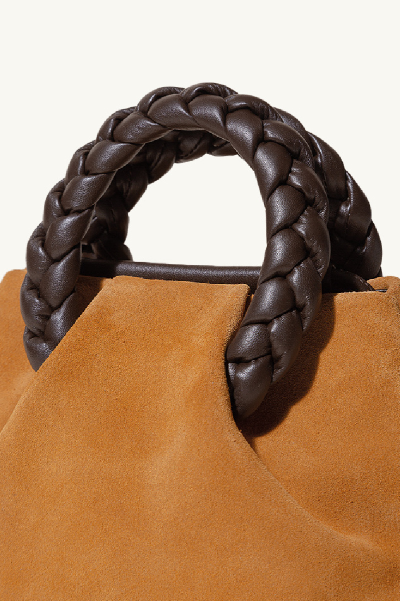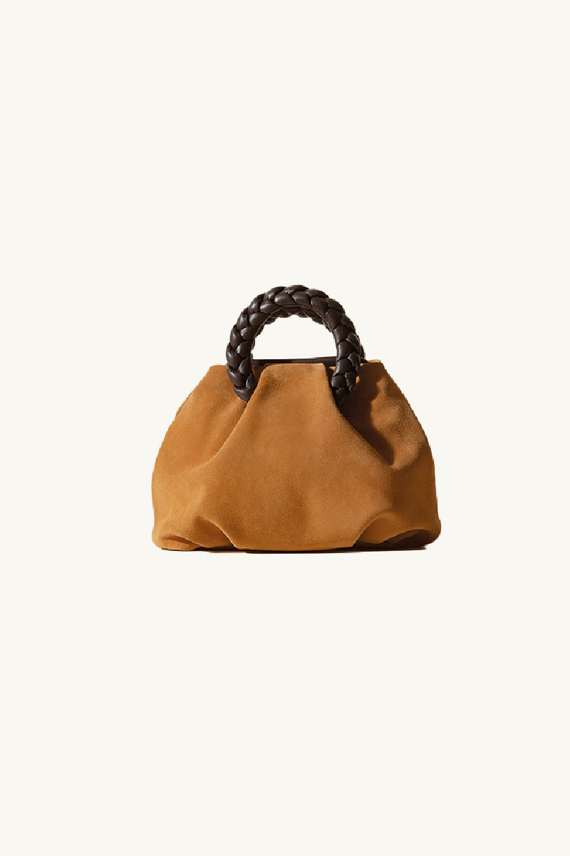 Handbag made from brown calf leather and beige suede calf leather lined with cotton canvas, by Hereu.