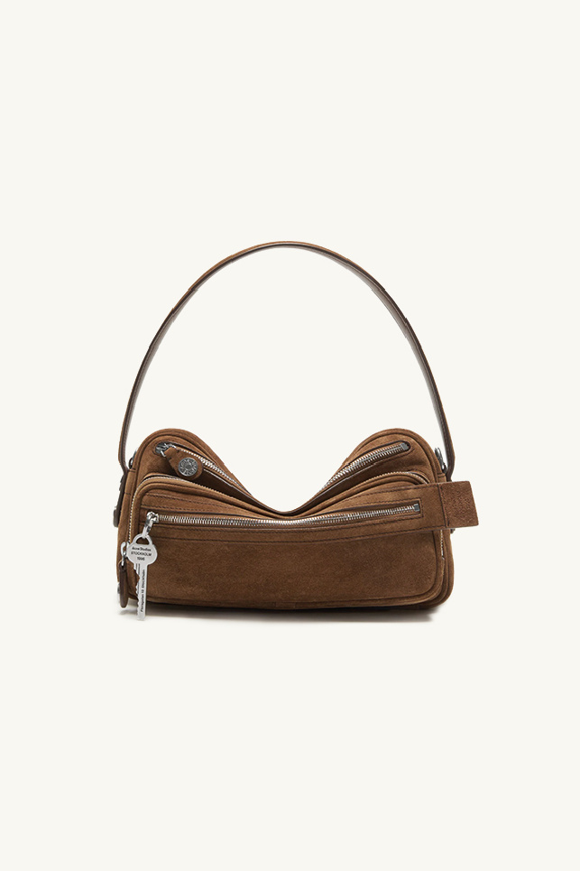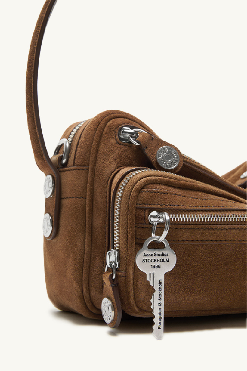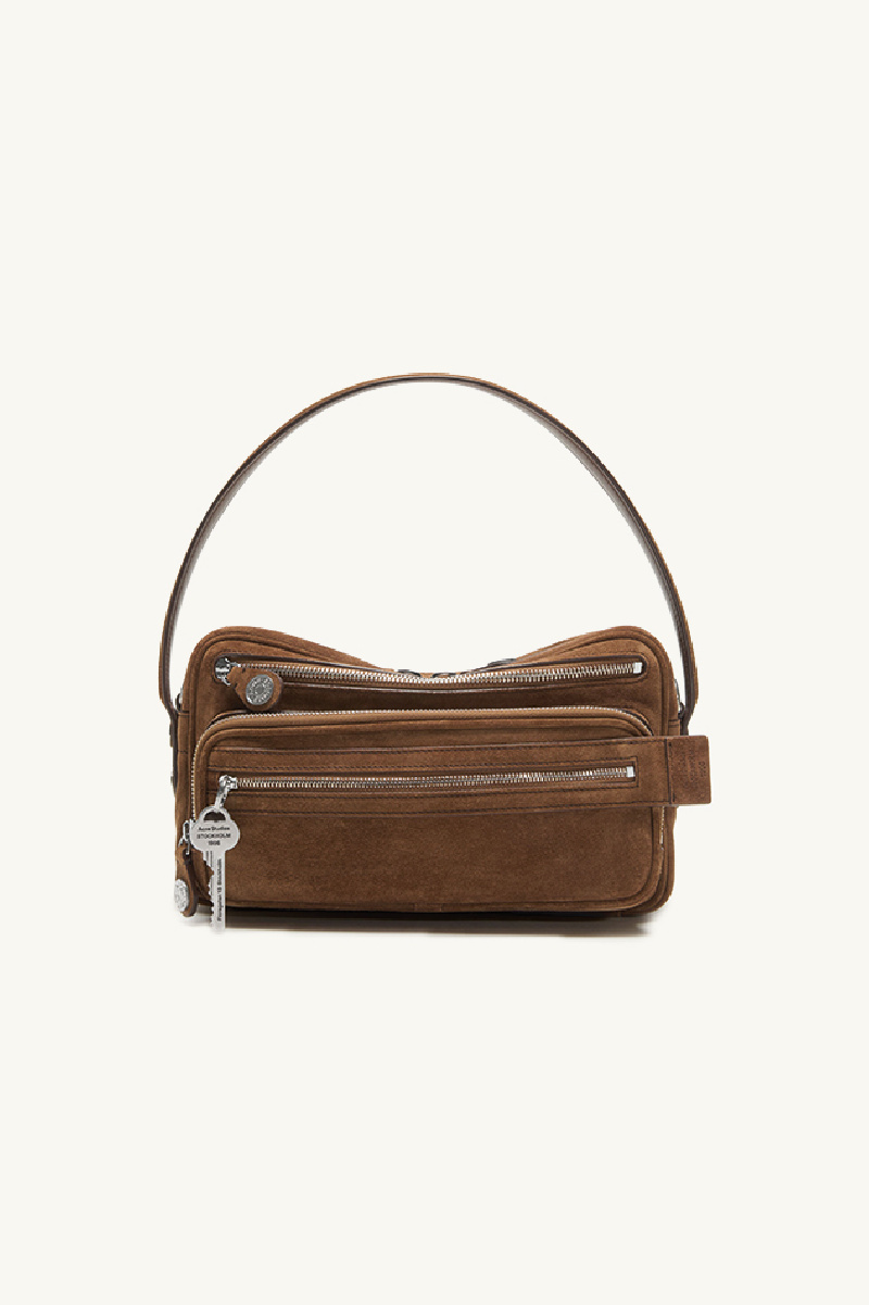 Medium-sized multi-pocket bag in brown suede from Acne Studios.