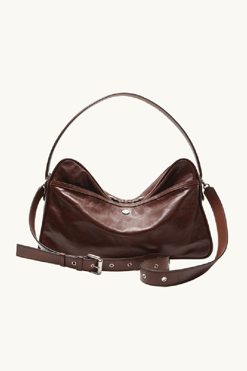 It can be worn on the shoulder with a large strap or crossbody, with a soft, slouchy silhouette that gives it a relaxed look.