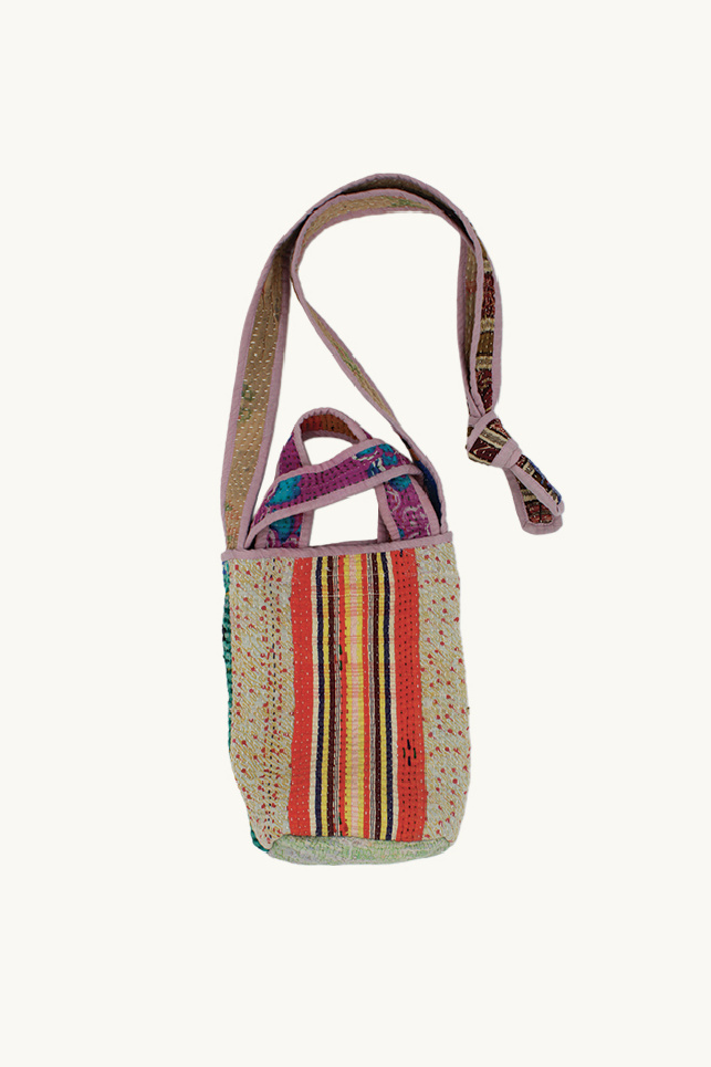 Reversible mini tote bag made from vintage Kantha quilts by Namai Studio.