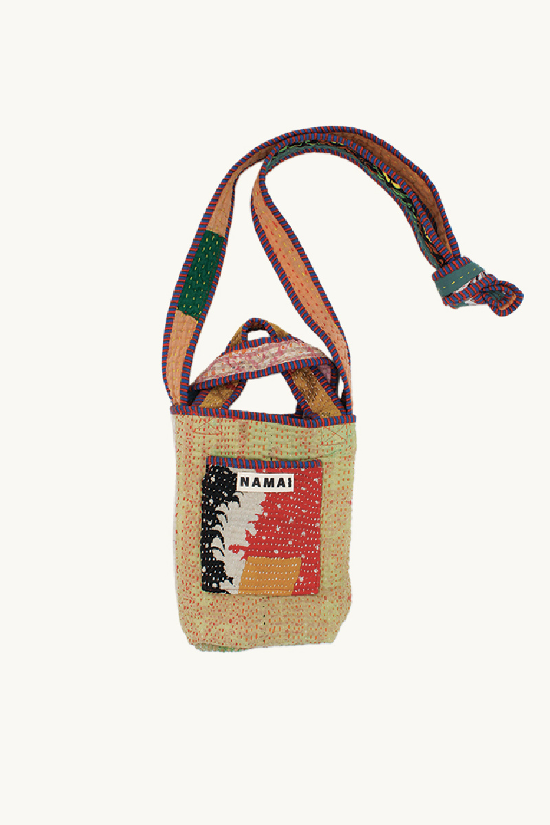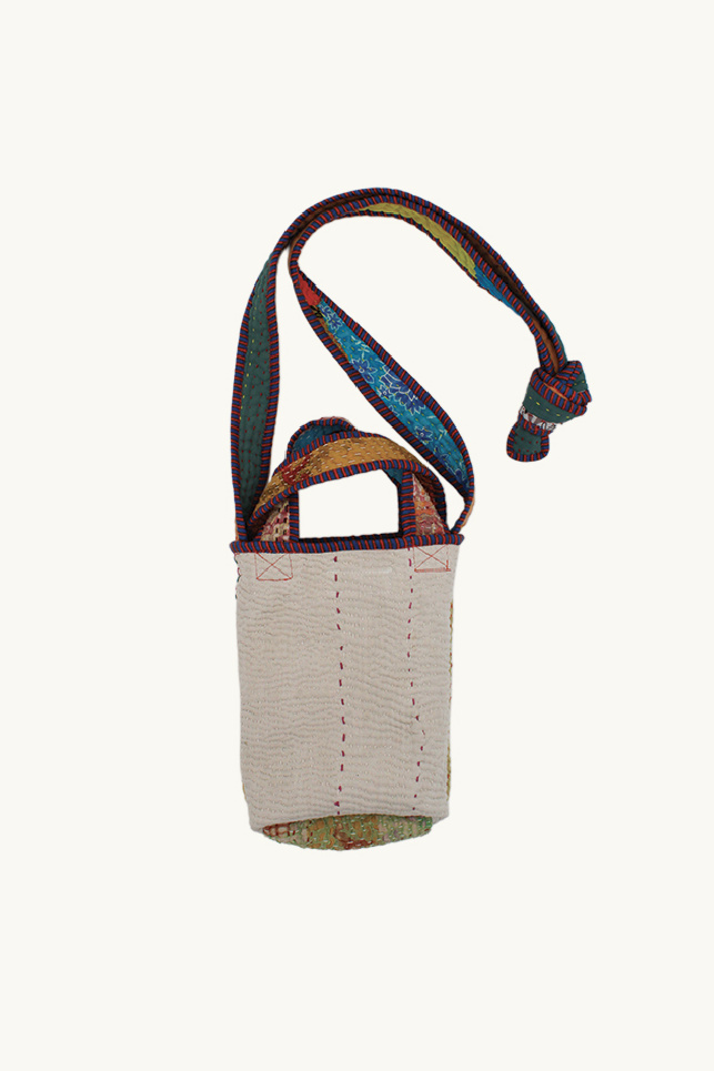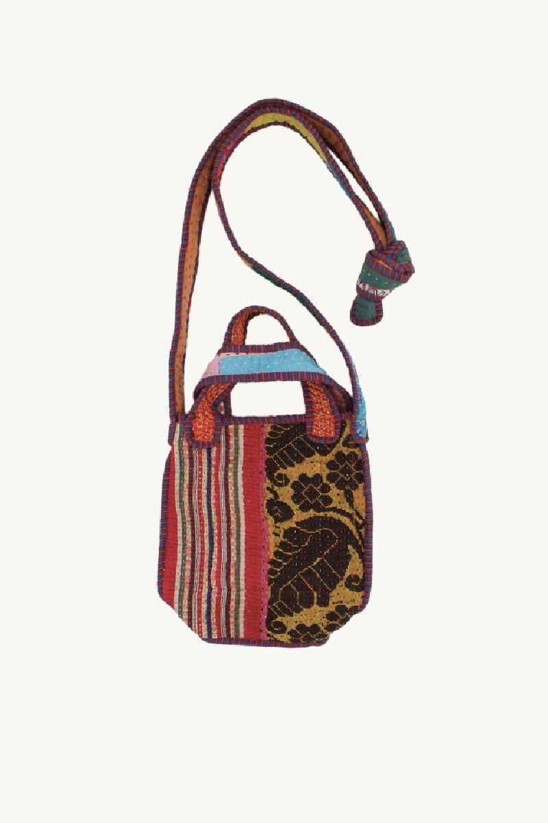 Reversible mini tote bag made from vintage Kantha quilts by Namai Studio.