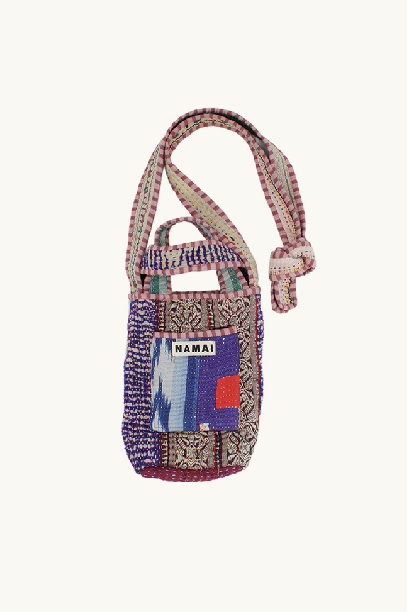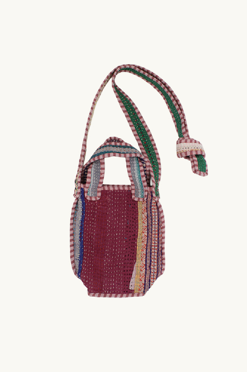 Reversible mini tote bag made from vintage Kantha quilts by Namai Studio.