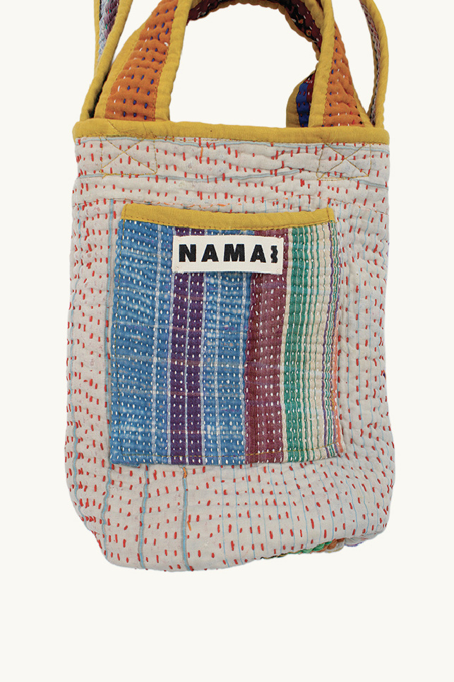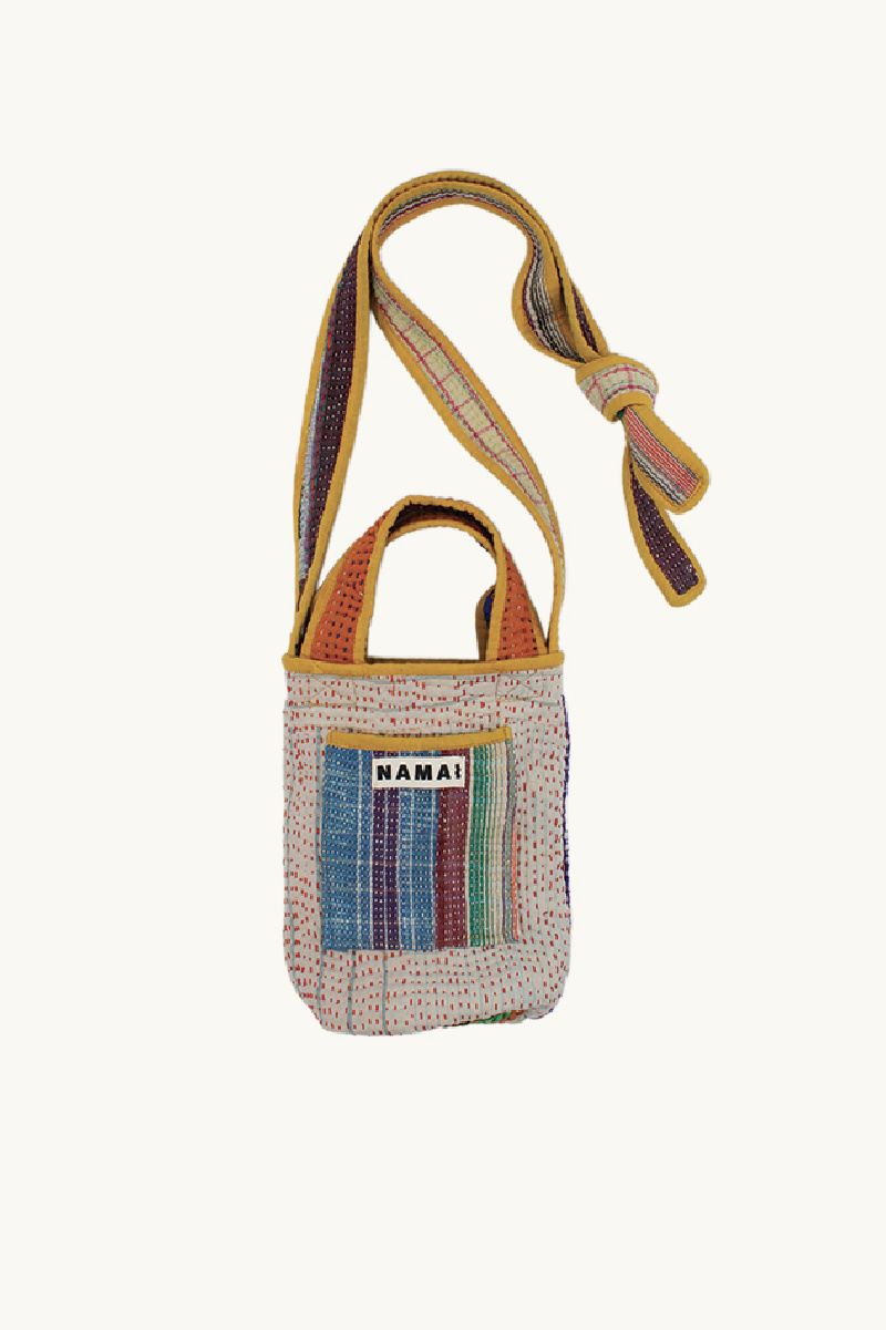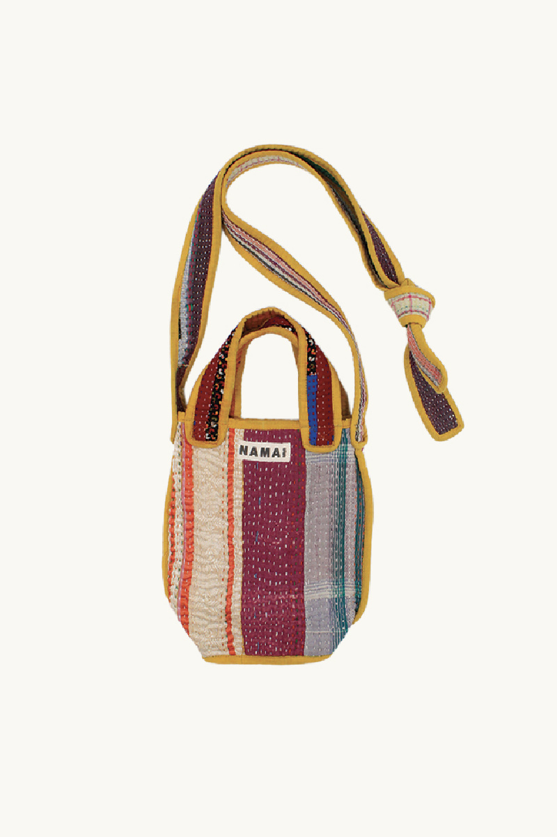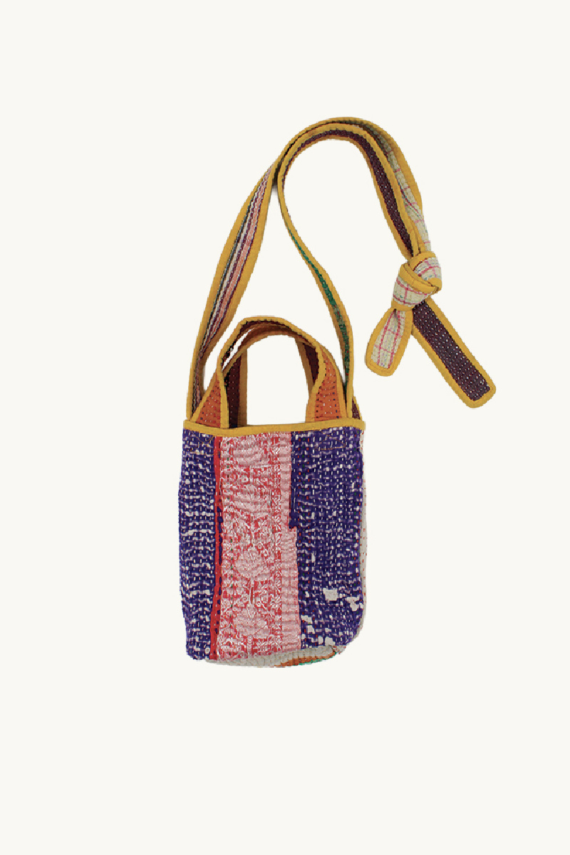 Reversible mini tote bag made from vintage Kantha quilts by Namai Studio.