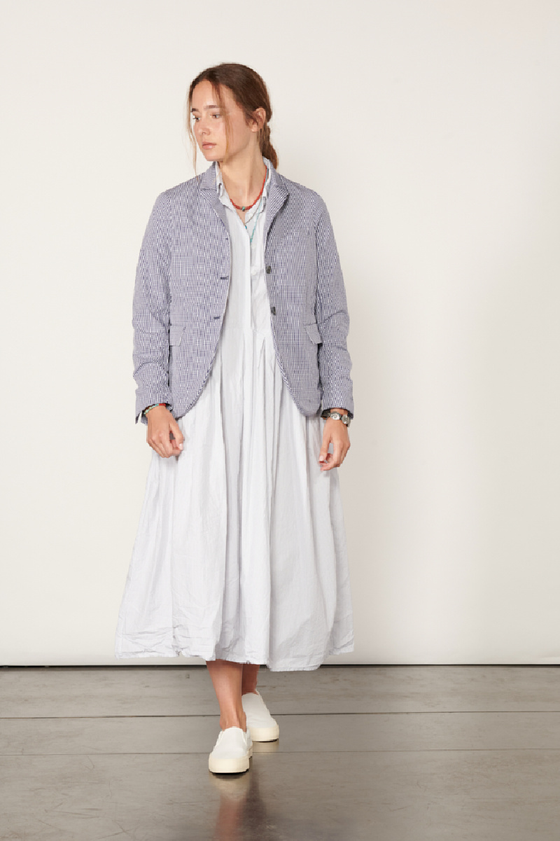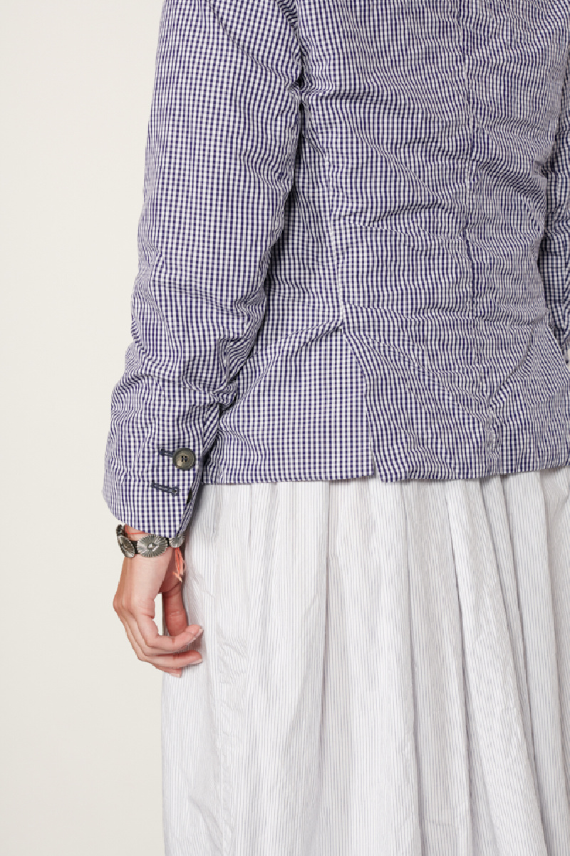 Tyrol jacket in Italian cotton, with a refined navy blue and white gingham pattern, by Bergfabel.