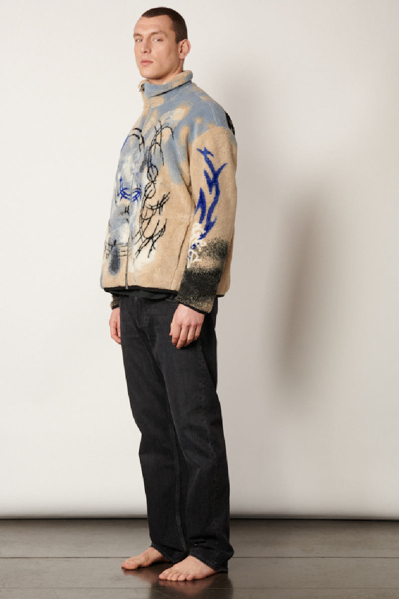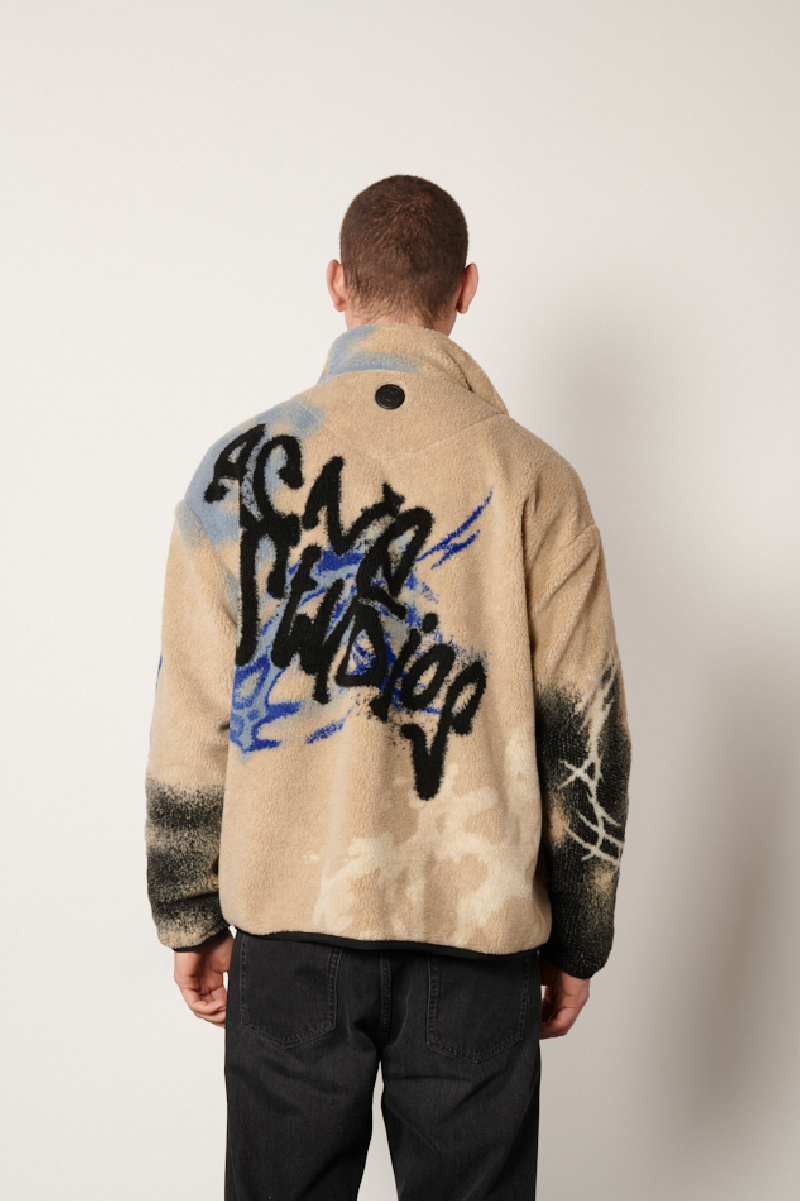 Beige printed jacquard fleece jacket from the brand Acne studios.