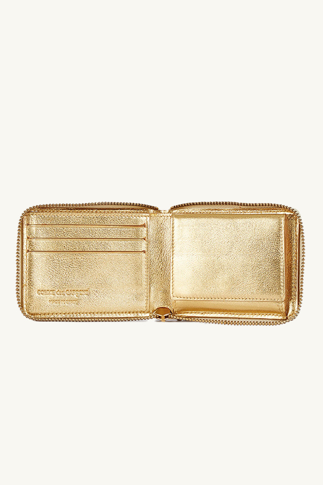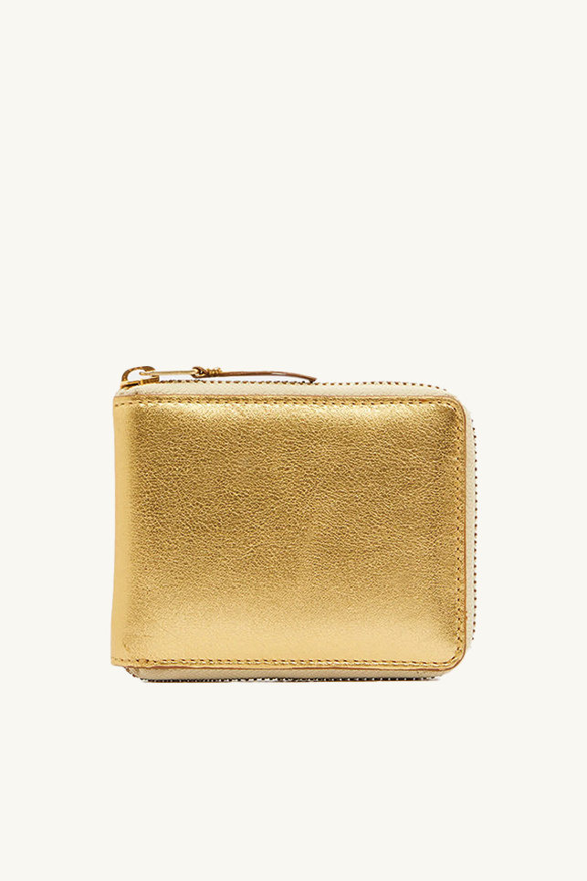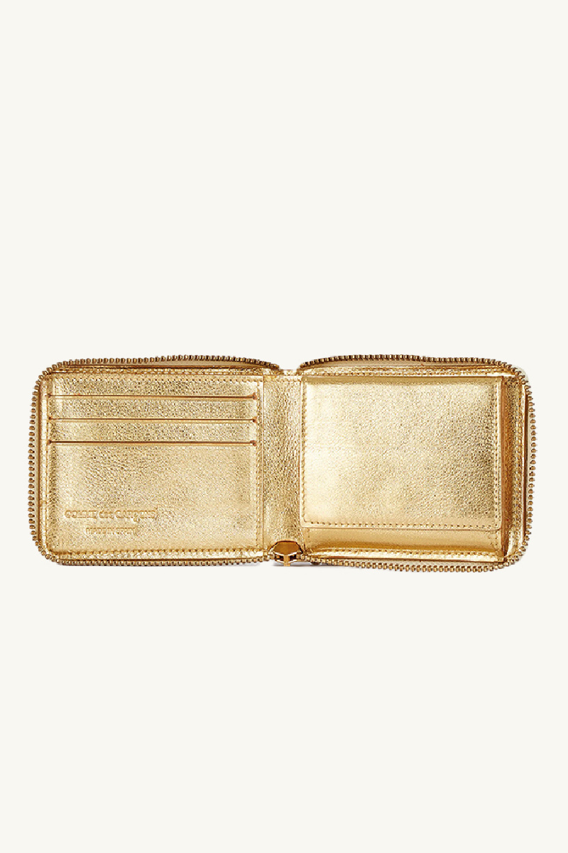 Comme Des Garçons gold wallet, in crackle-effect cowhide leather.