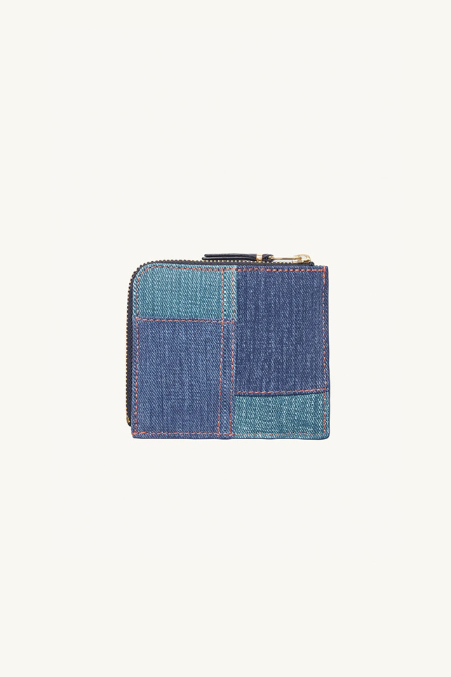 Small wallet by Comme des Garçons crafted from lambskin leather embellished with a trompe l'oeil denim patchwork pattern.