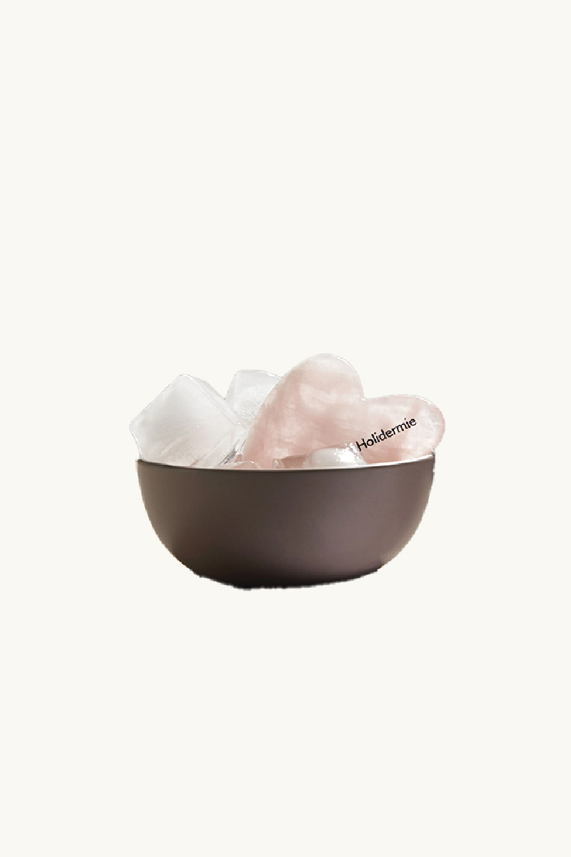 Use the rose quartz Gua Sha to sculpt and smooth the contours of your face. To maximize the firming effect, keep it cool, like an ice cube.