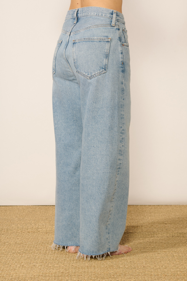 Low Curve Fray jeans, crafted from light blue marbled denim, by Agolde.