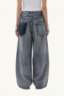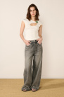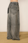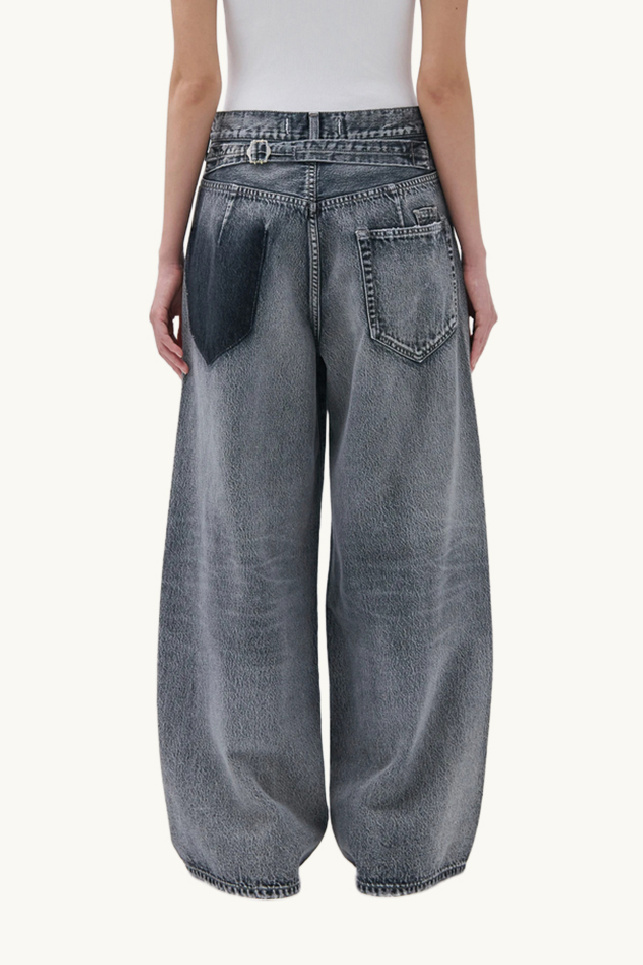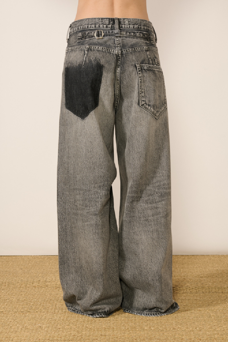 Inspired by vintage styles, the jeans showcase a pronounced wash and a deliberately deconstructed contrasting back pocket.