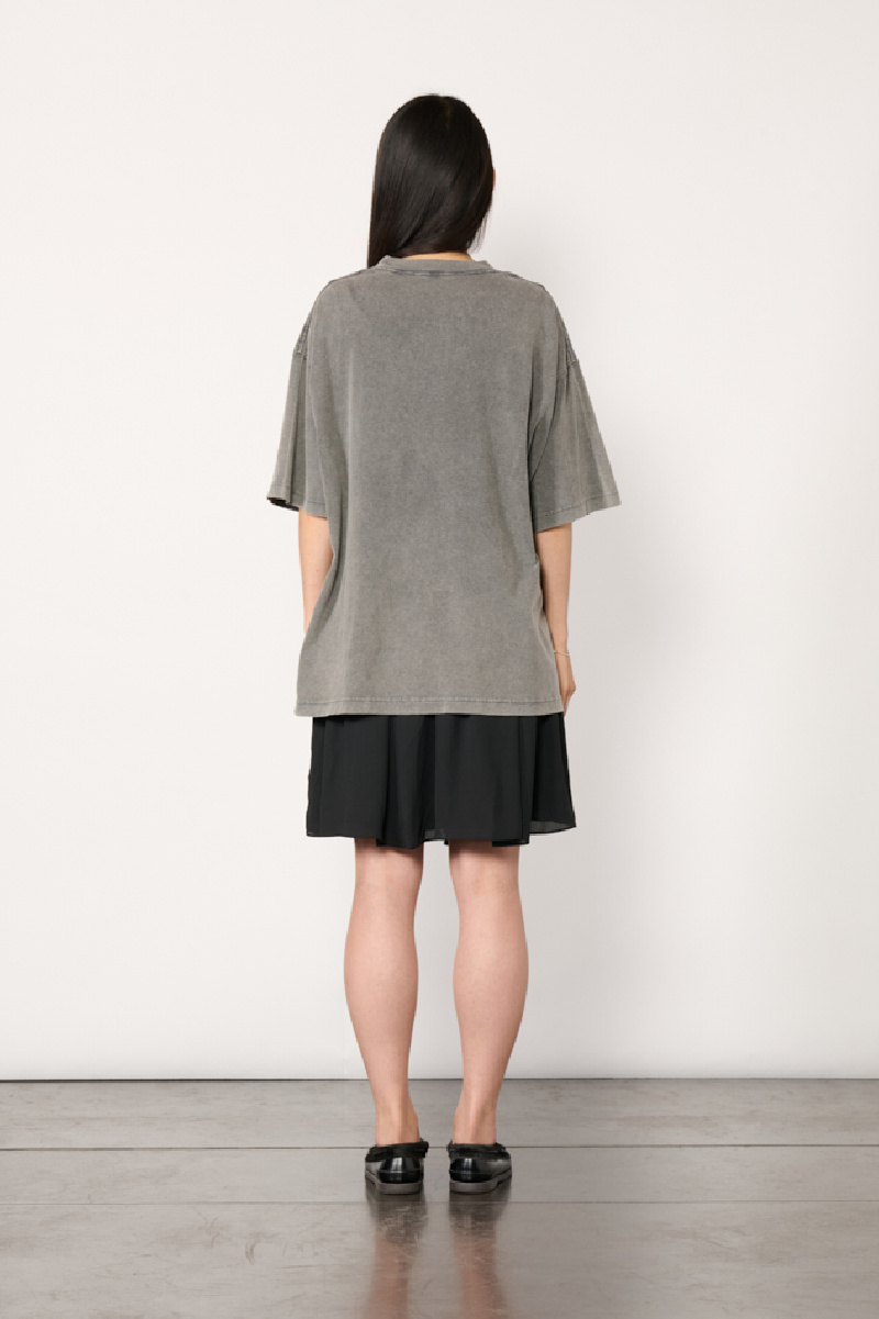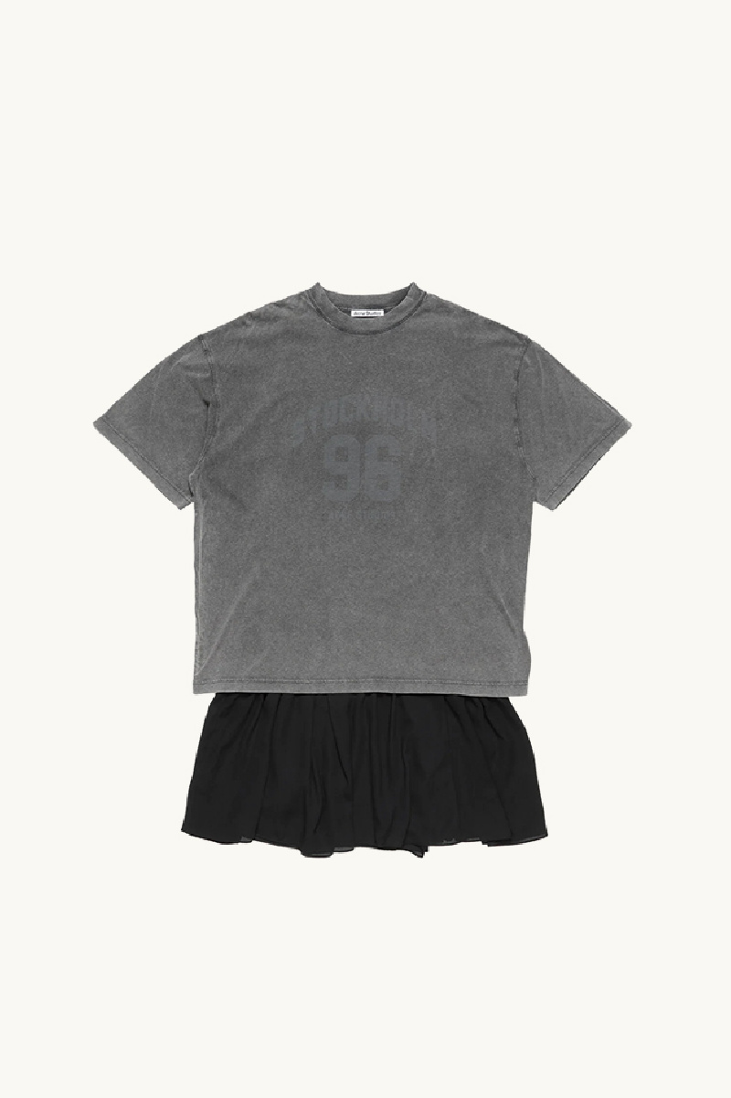 T-shirt dress made from anthracite and black cotton jersey knit with slub yarn, by Acne Studios.
