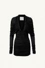 Short black dress crafted from sculpted drape fabric by Christopher Esber.