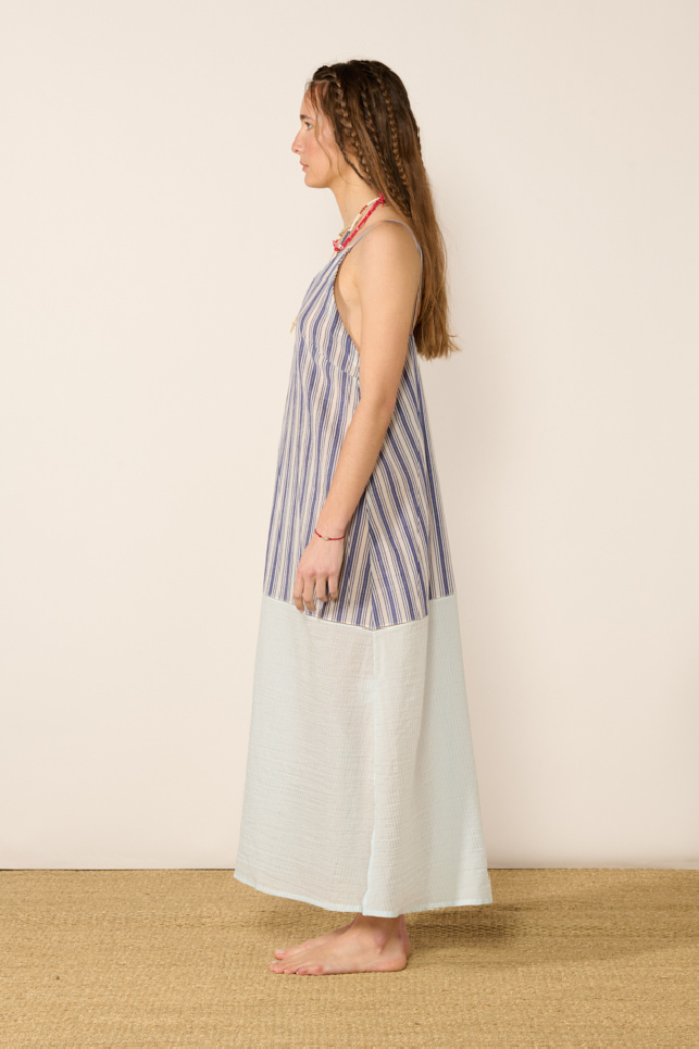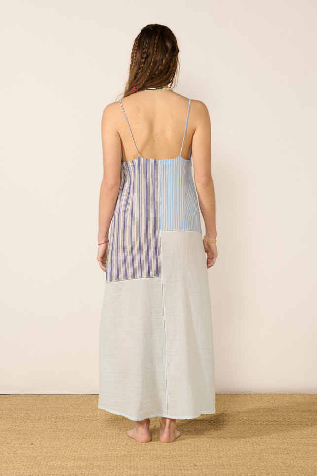 Long cotton dress in shades of blue by Mii.