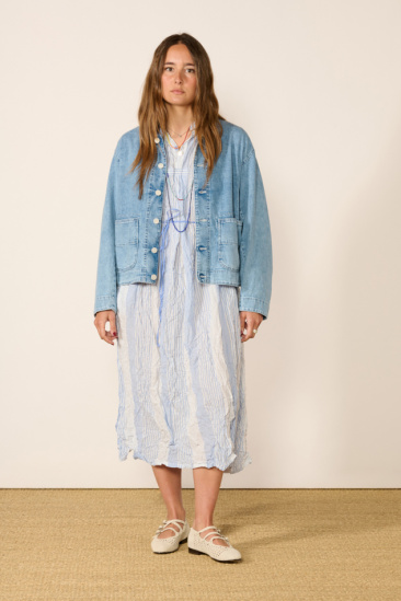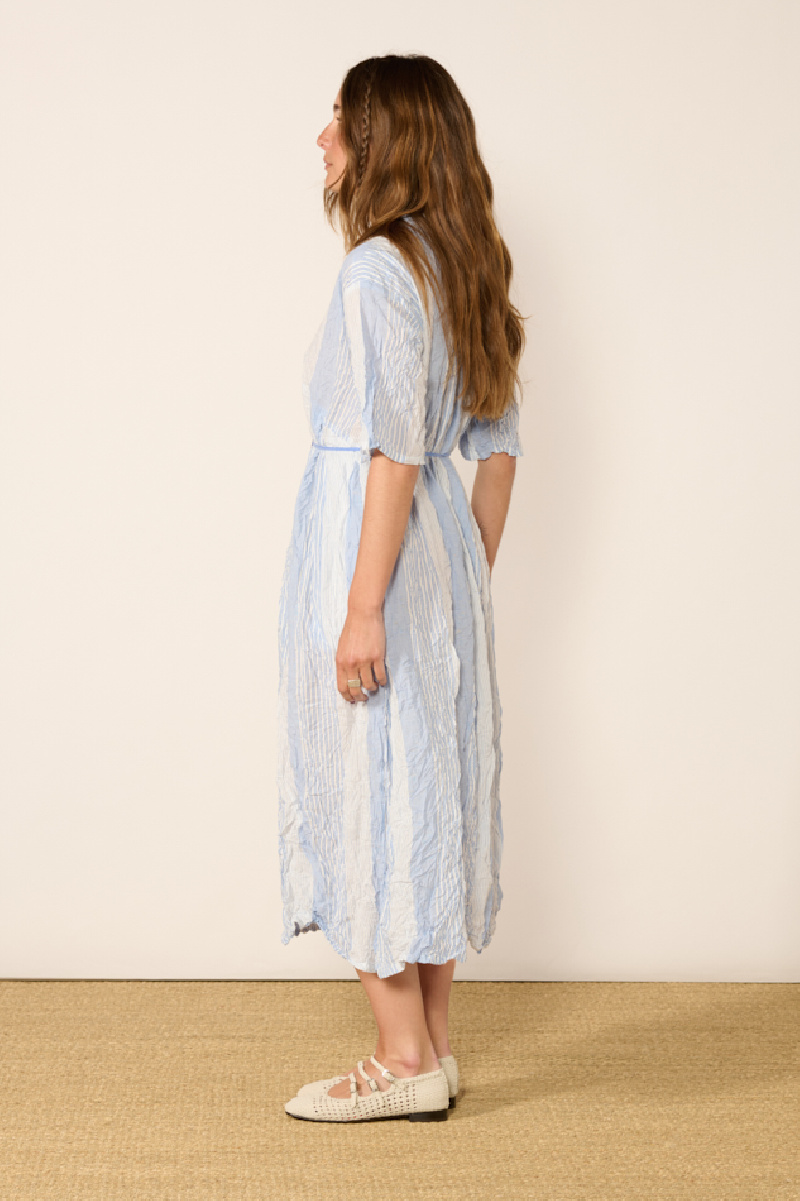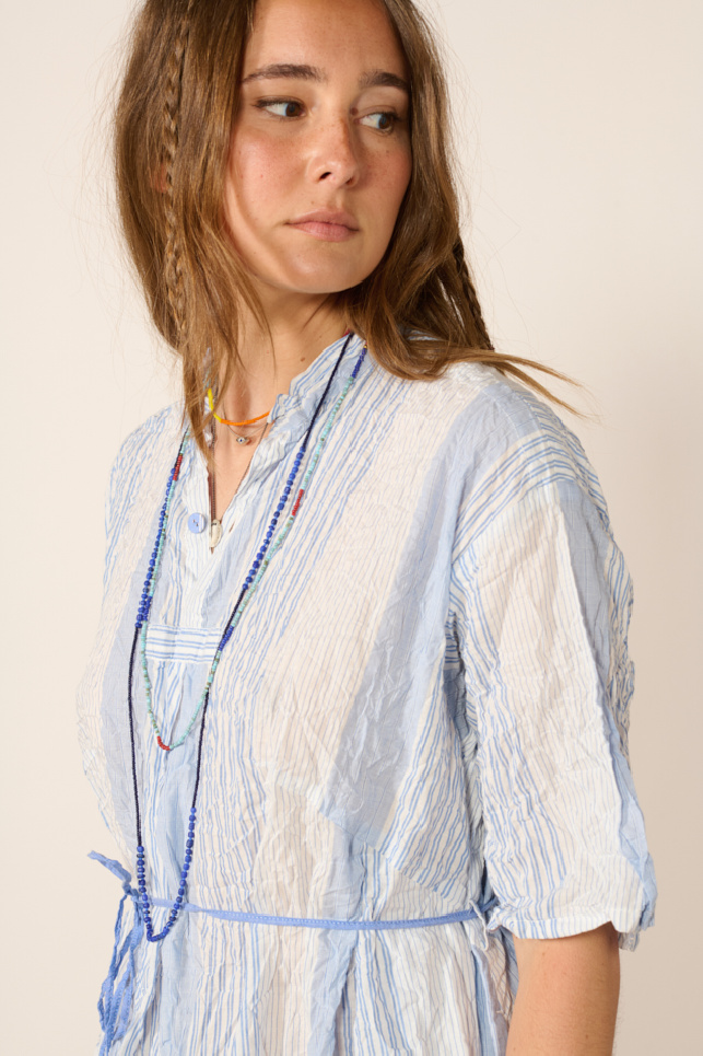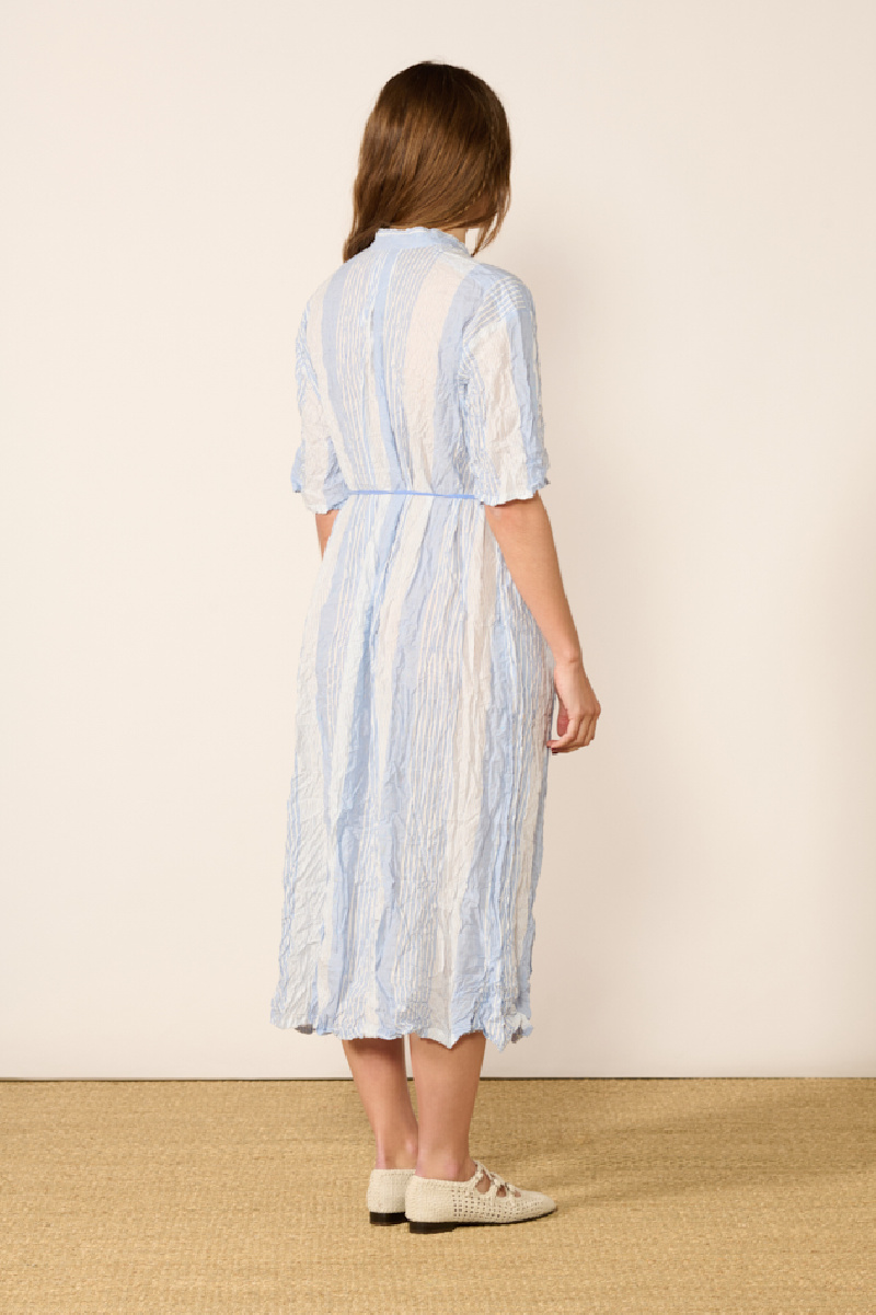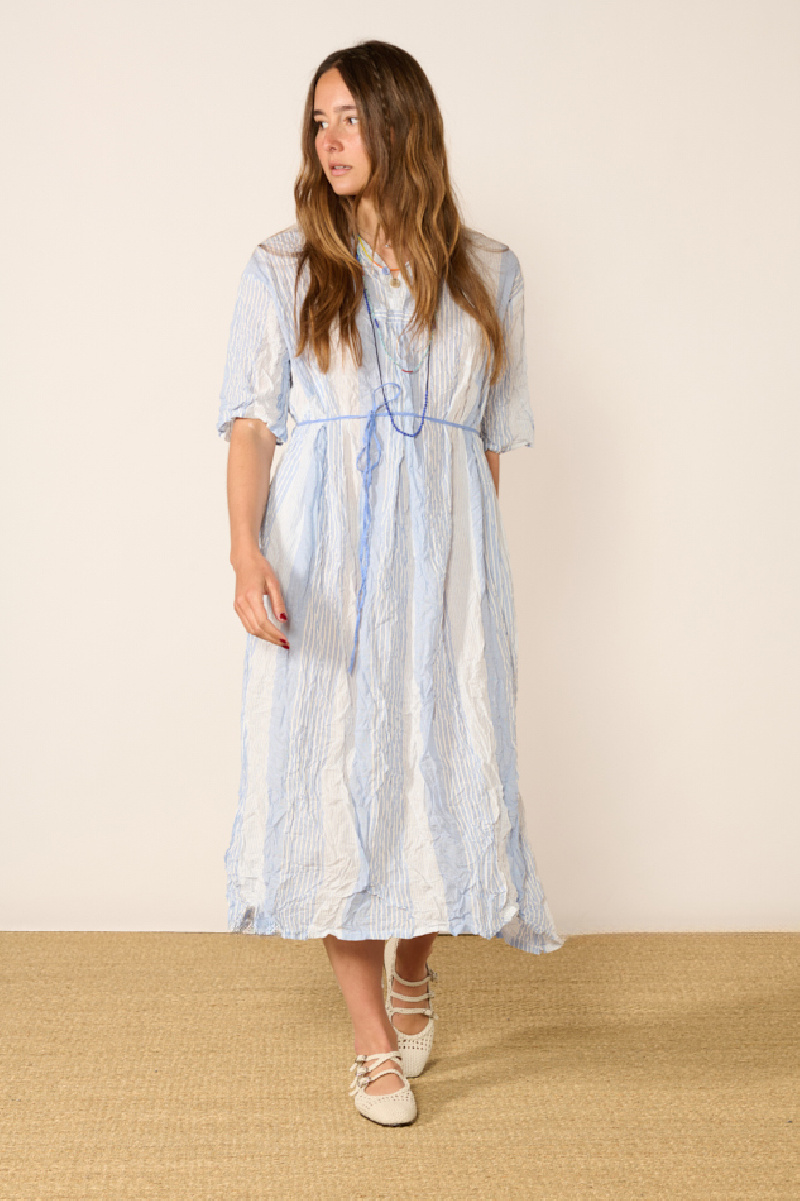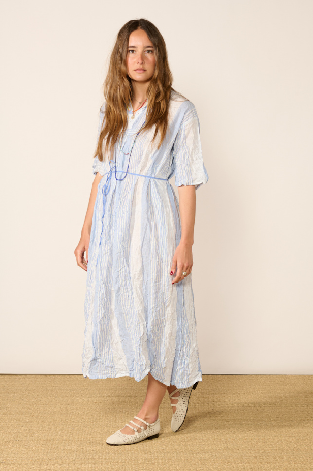 Striped crinkled dress, crafted with smocking technique, by Pas de Calais.