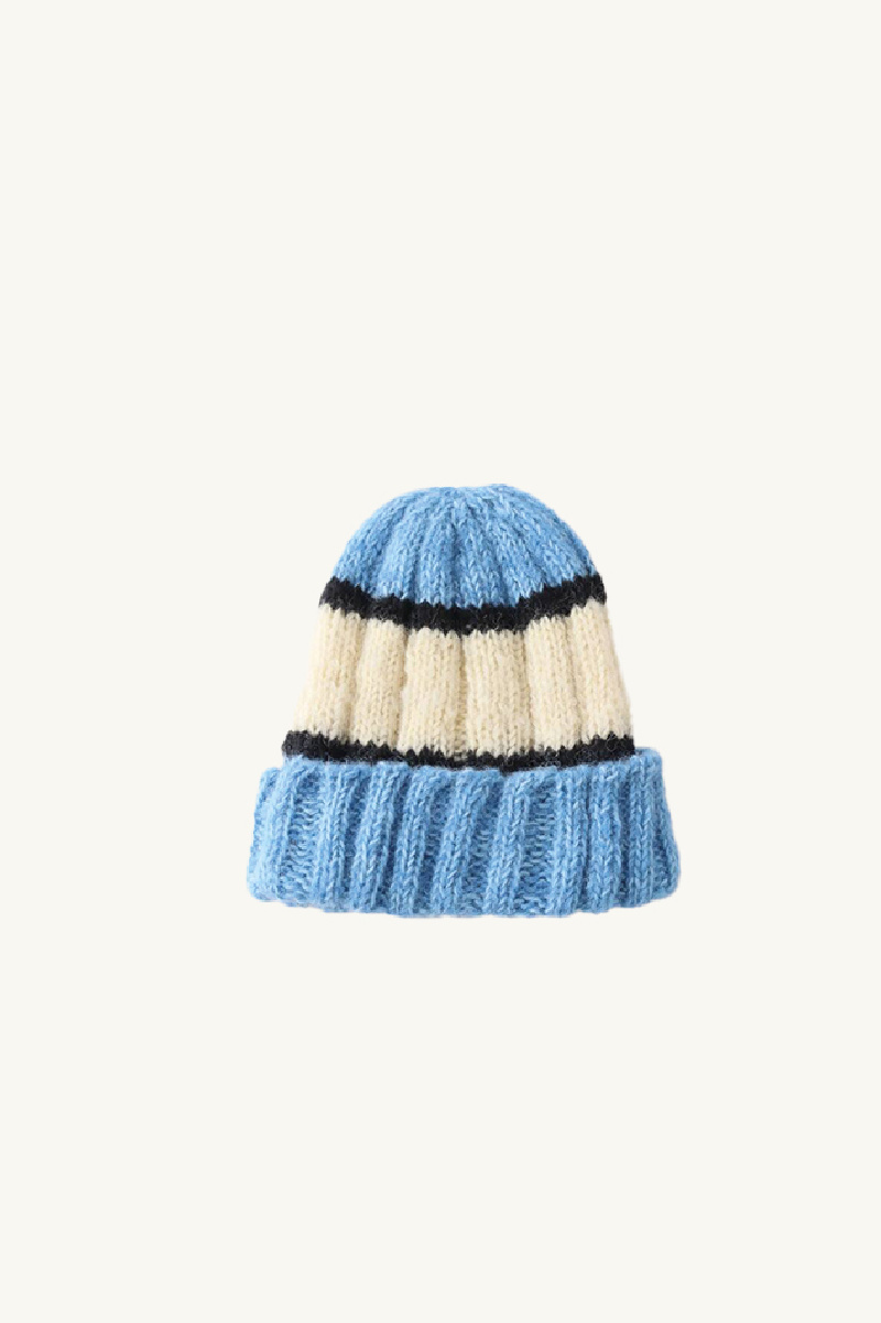 Hand-knitted striped beanie -...