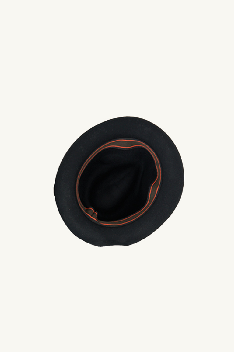 Fedora with upturned brim, this model can be folded or rolled up using a drawstring, which also allows for a customised fit.