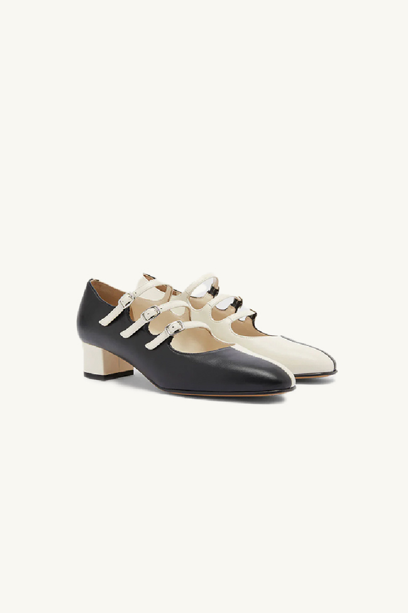 Soft leather two-tone black and ivory Mary Jane shoes from Carel.