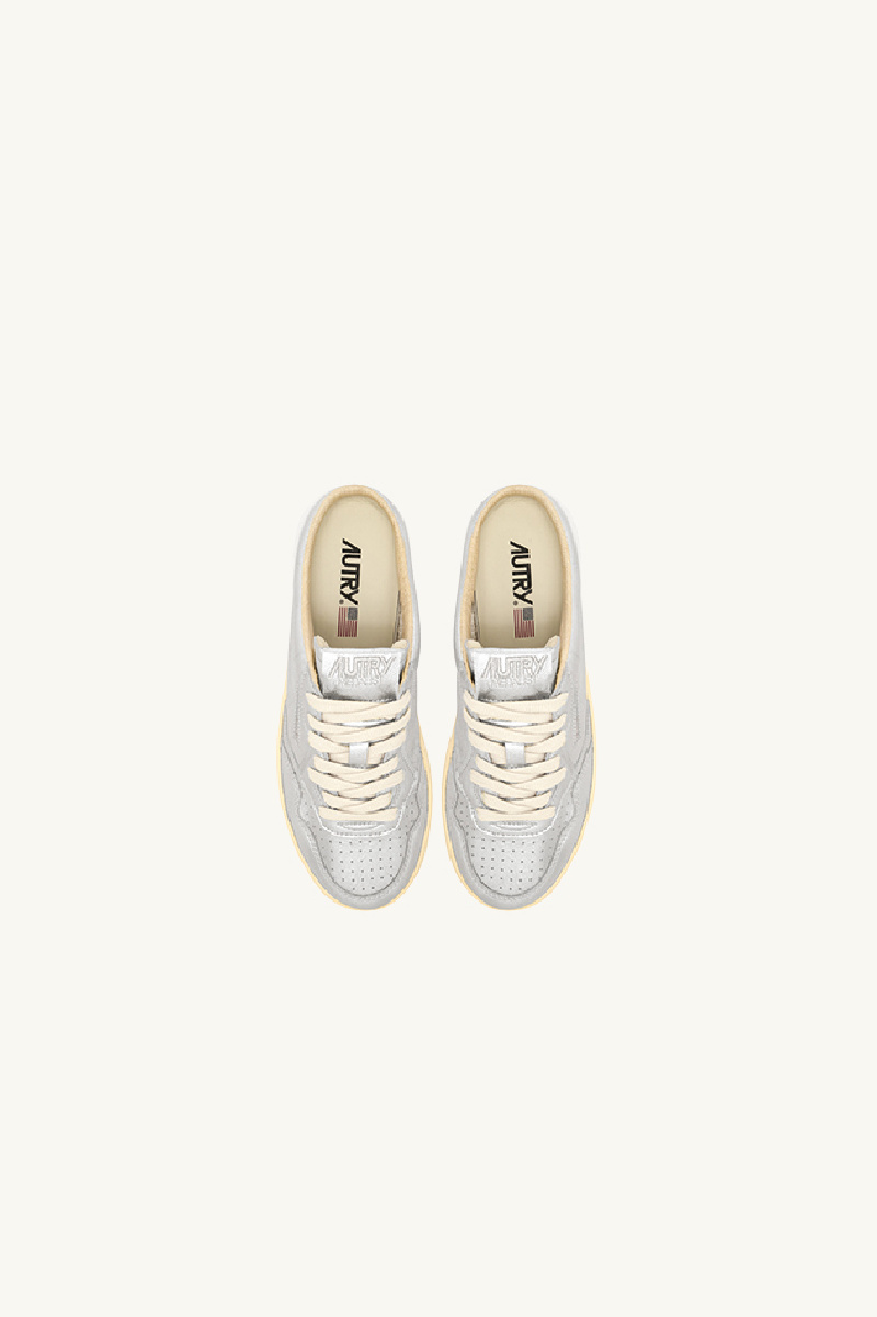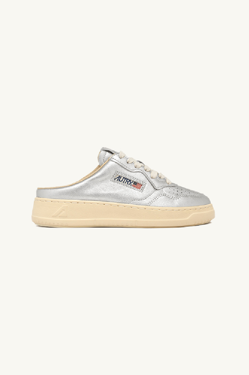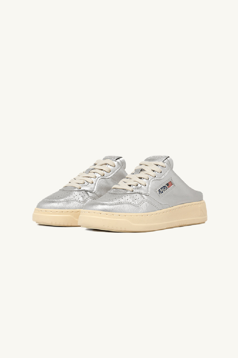 Medalist mule sneakers from the brand Autry in metallic silver nappa with «used» effect.