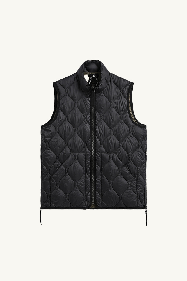 Quilted sleeveless down jacket with 800FP down and feather padding, from Taion.