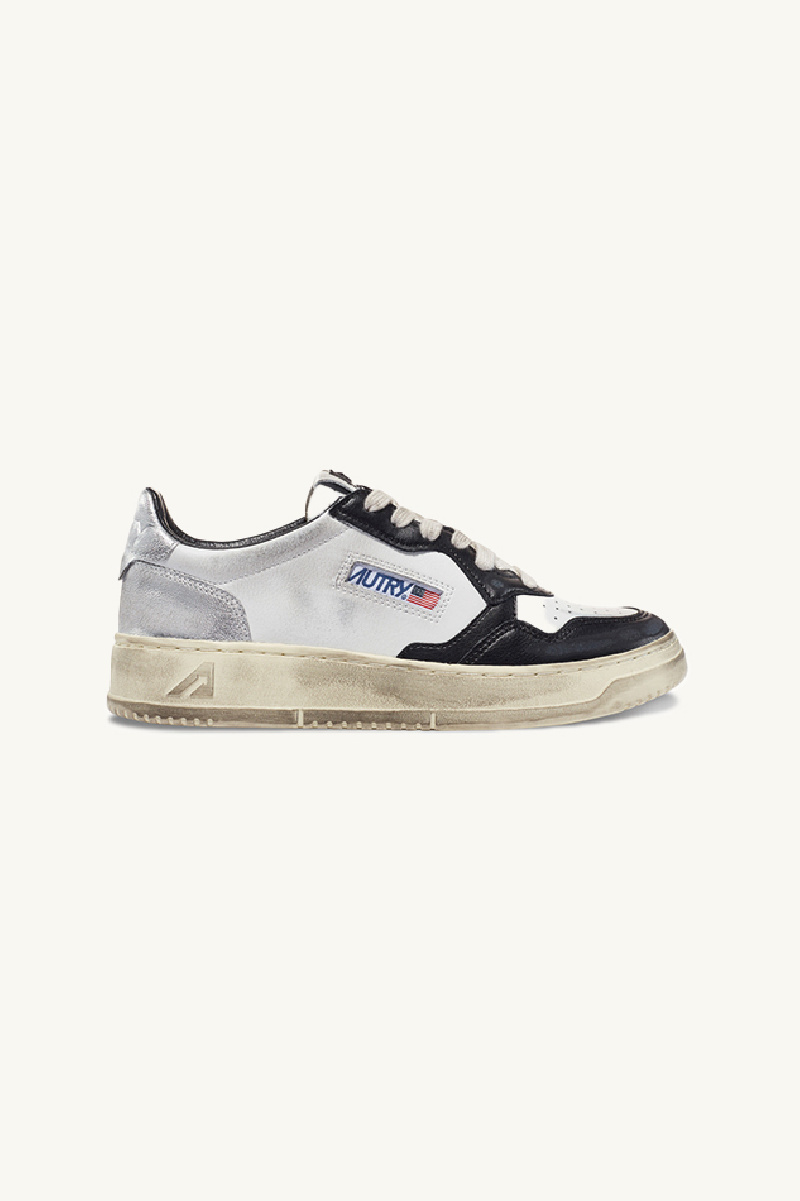 Super-Vintage sneakers from Autry in white, black and silver made of soft leather with aged effect.