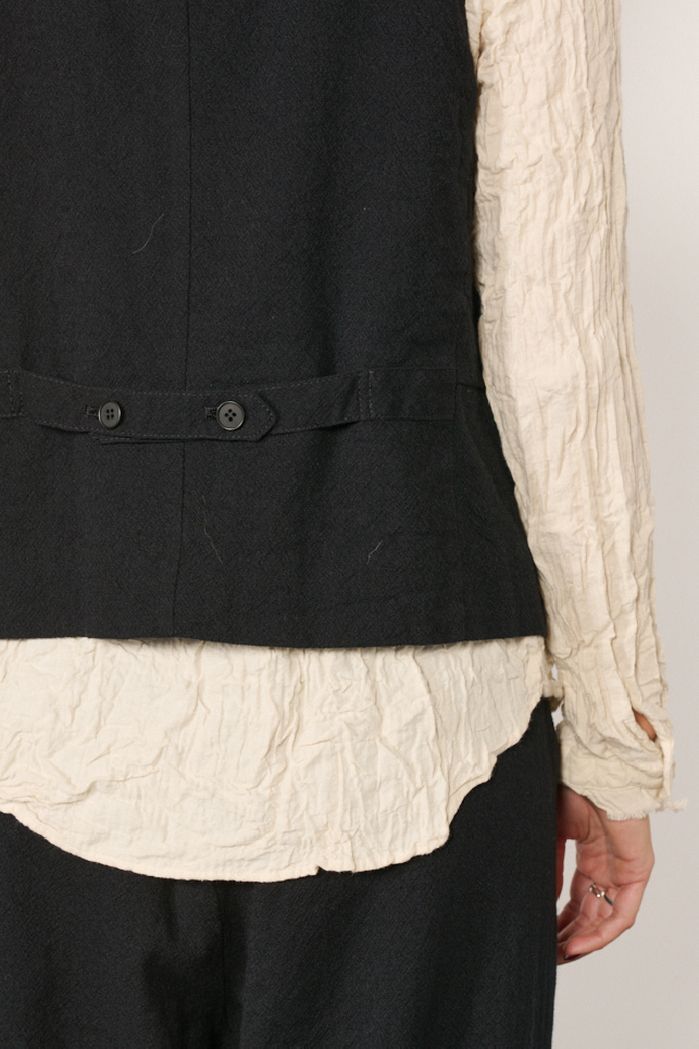 Sleeveless waistcoat in a finely textured blend of black wool and cotton, from the Pas De Calais brand.