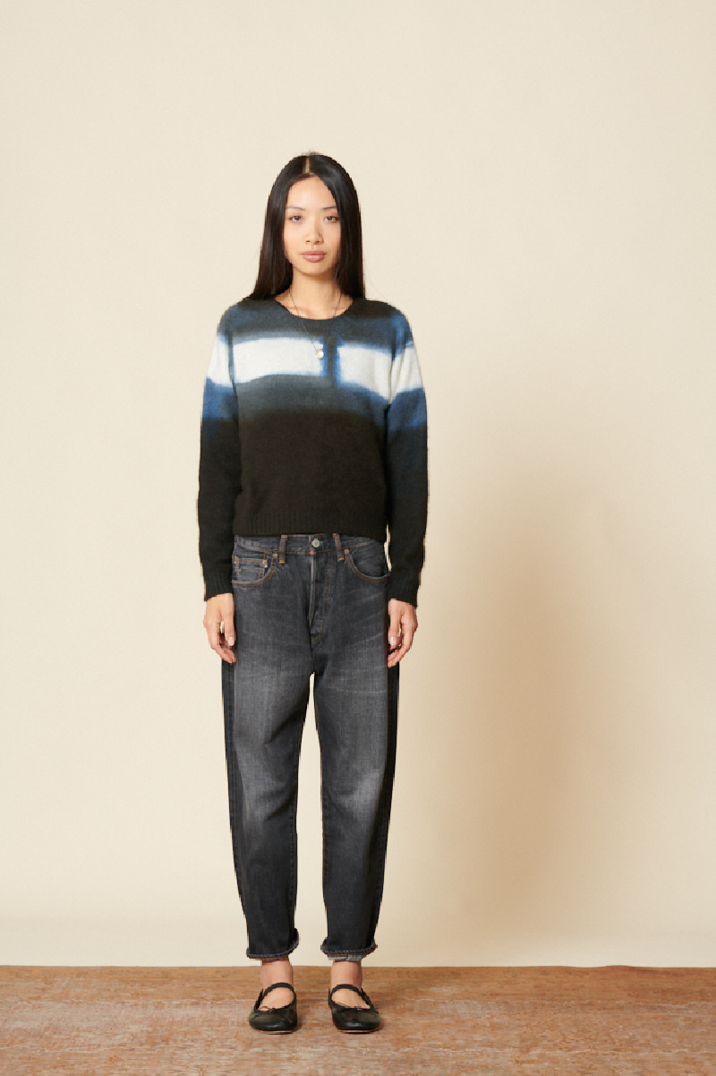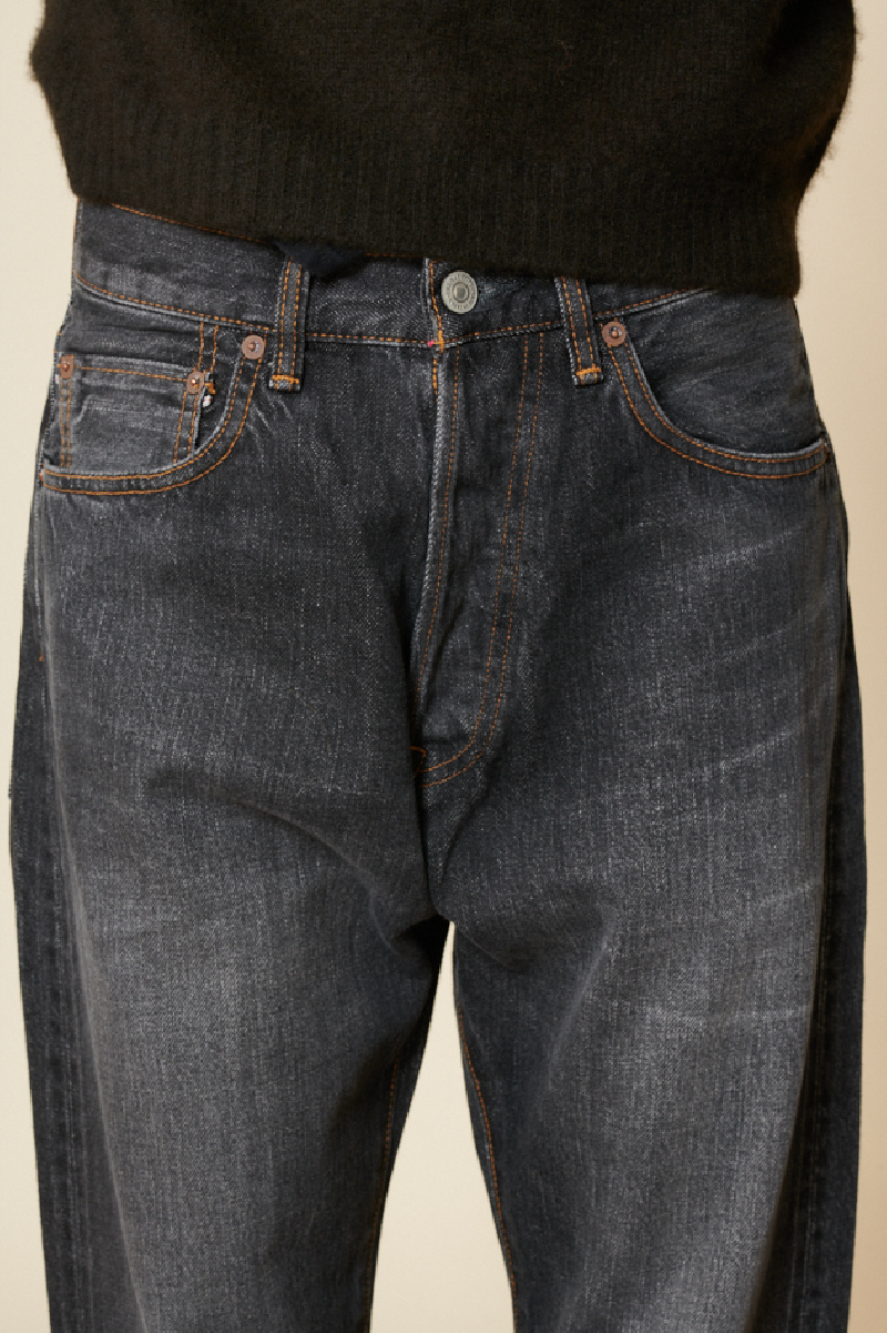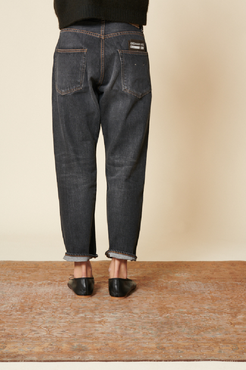 Ordinary Fits mid-rise washed black jeans, straight fit, five pockets, button fastening under placket, straight hems, leather label on back.