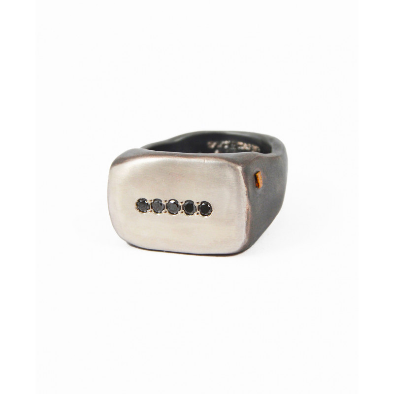 Rosa Maria Lulu ring in silver set with black diamonds. Rosa Maria jewelry is a bold blend of ethnic inspiration and raw industrial spirit.