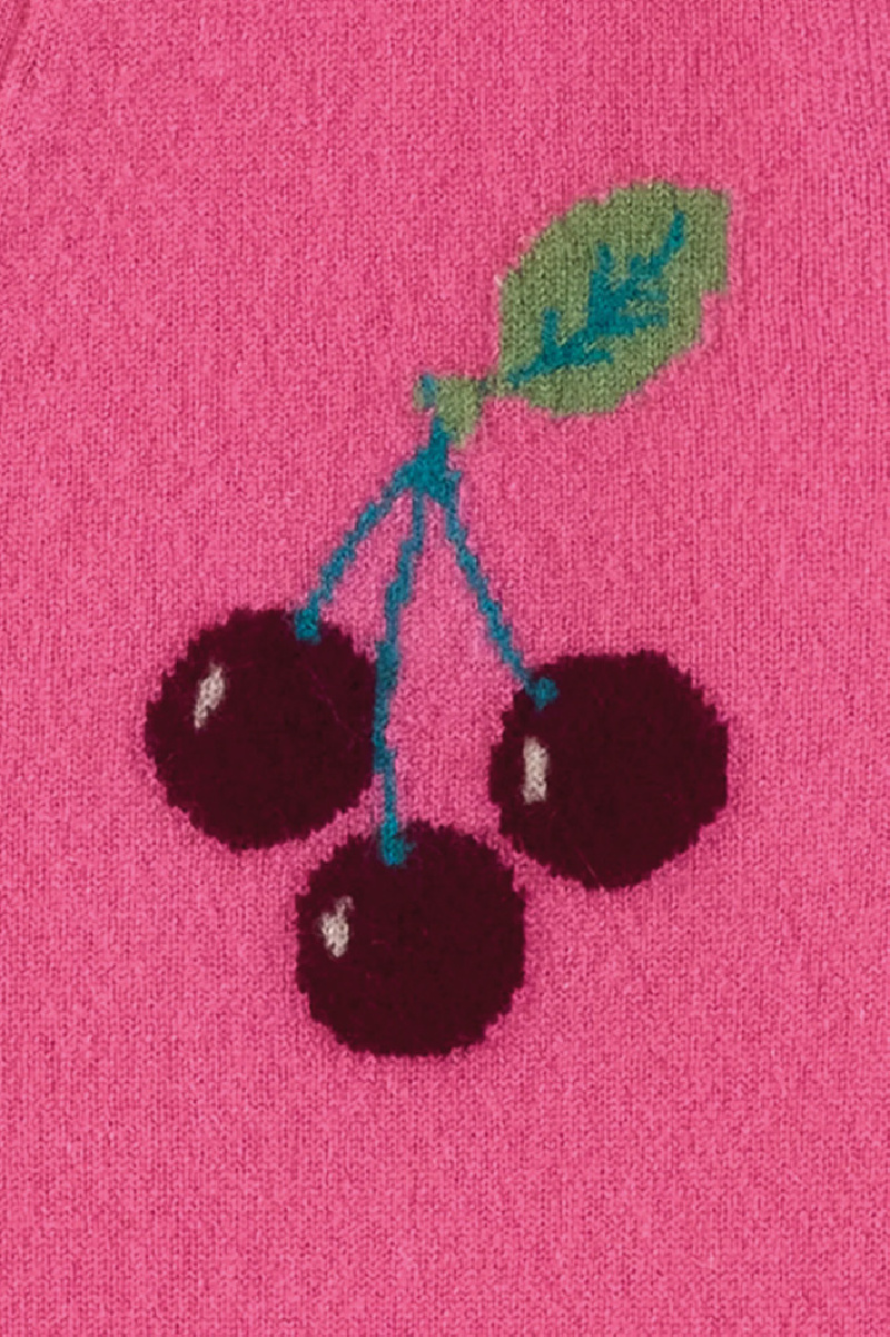 It has a relaxed fit with a cherry design on the heart, and features ribbed cuffs, a crew neck, and a ribbed hem.