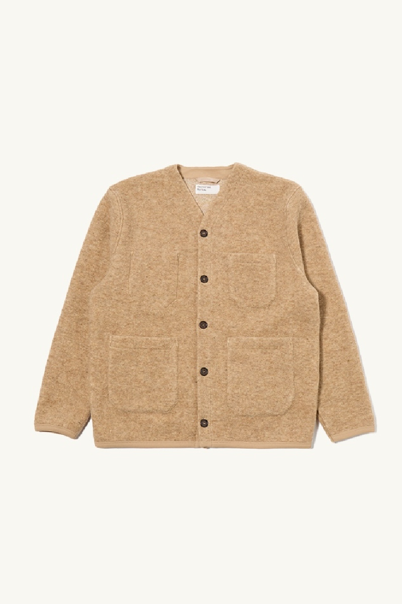 Fawn wool fleece cardigan from Universal Works.
