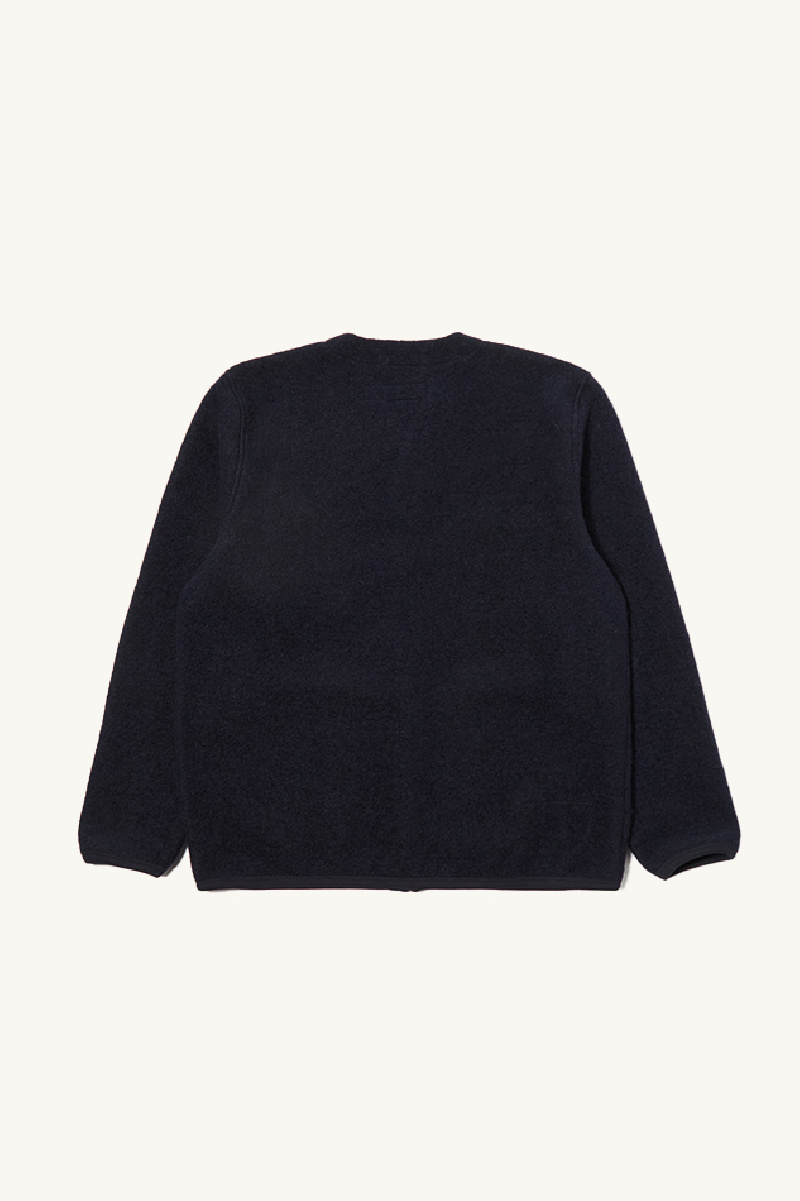 Navy wool fleece cardigan from Universal Works.