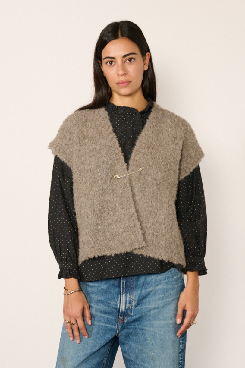 Sleeveless vest crafted from alpaca and wool in taupe by Maison de Soil.