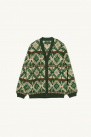 Cardigan jacket made from long-pile boa fleece with a traditional jacquard pattern, in green, from the Beams + brand.