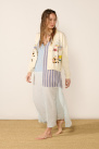 Cream cardigan knitted in wool and cotton, hand-embroidered, from the Mii brand.