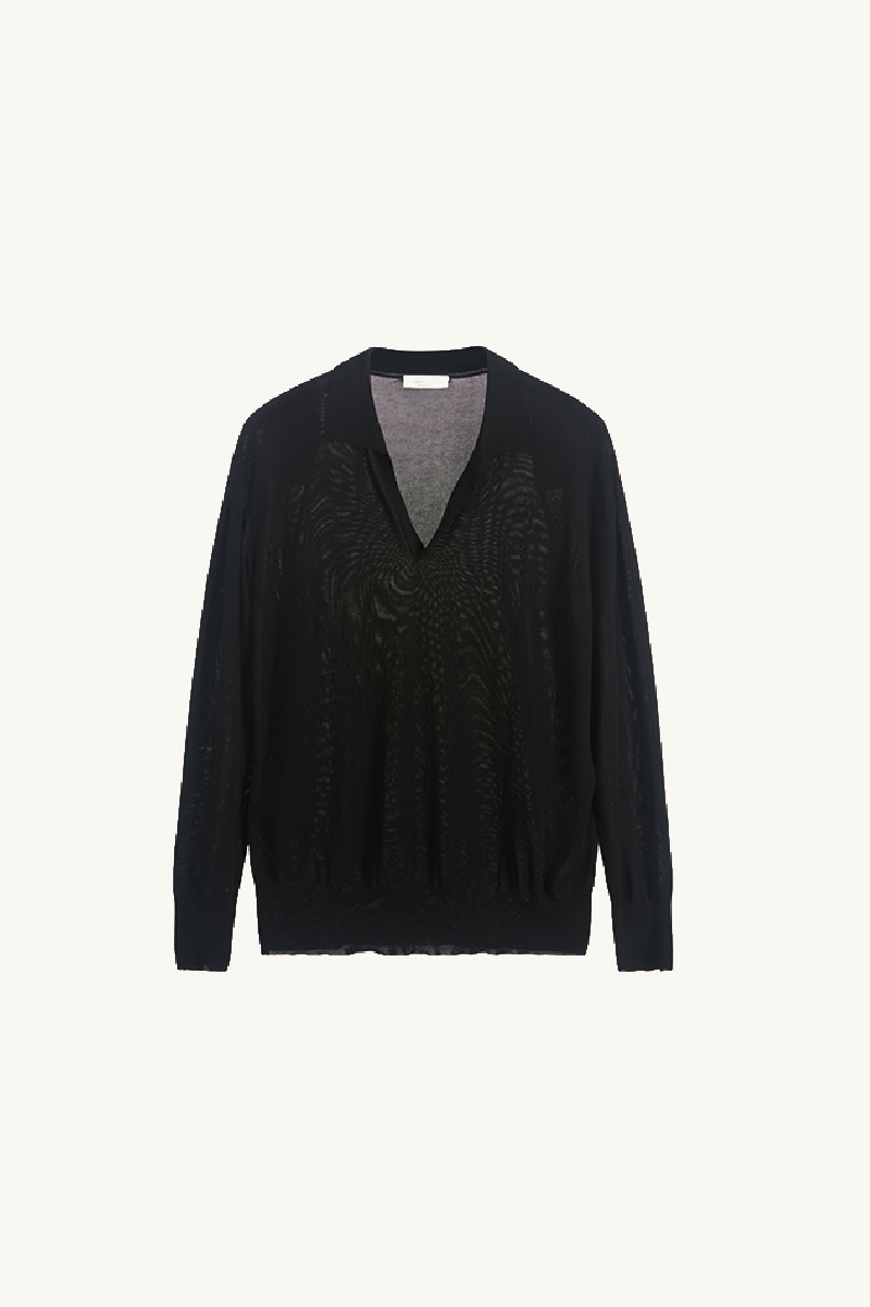Fine knit long-sleeved polo shirt made from a cotton and viscose blend, by Roberto Collina.