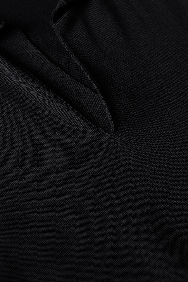 It offers a classic fit with a buttonless collar and ribbed trim for a perfect drape.