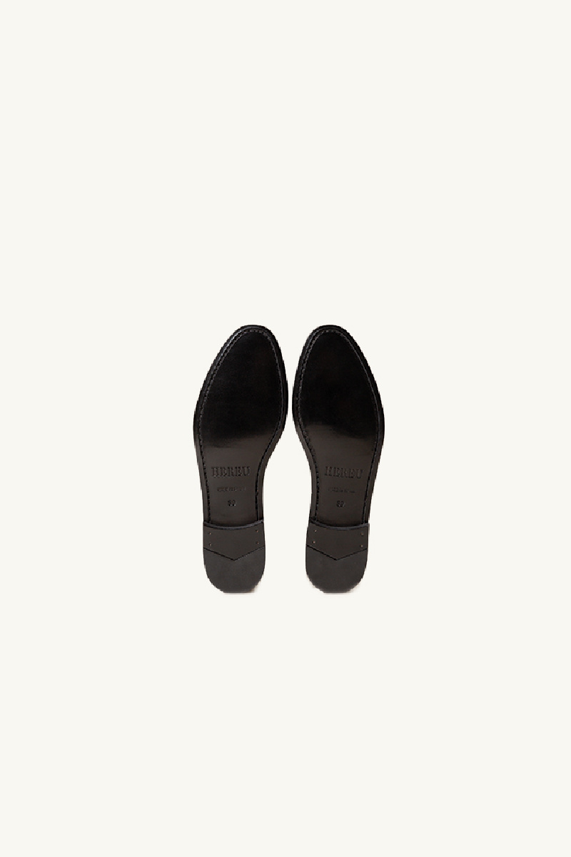 Handcrafted loafers made from shiny aged calfskin leather by Hereu.