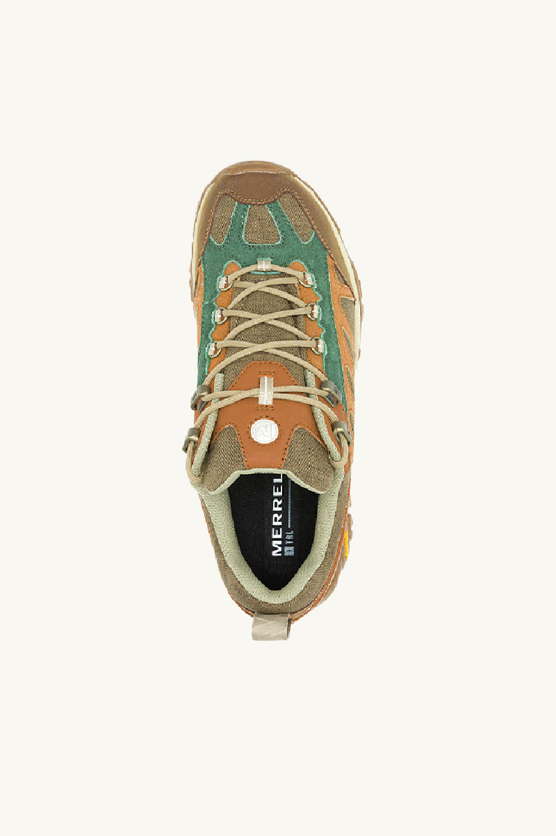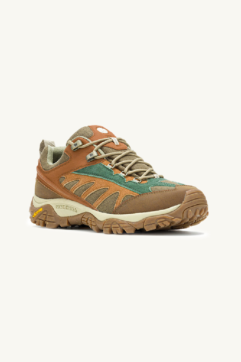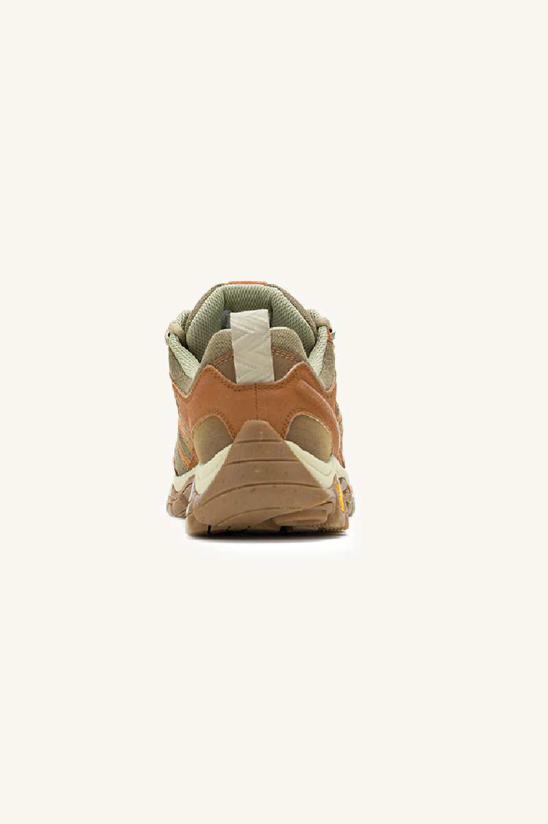 Moab Mesa Luxe Kangaroo Sneakers, an eco-responsible version of the original model. Made from recycled premium suede, vegetable grain leather and canvas, it features 100% recycled laces, straps, mesh lining and insole. It offers traction, stability and durability on all terrains thanks to a Merrell air cushion, lightweight EVA midsole and Vibram® Ecostep outsole. The rubber heel and toe cap contain 10% recycled coffee grounds, with Cleansport NXTTM treatment for natural odour control.