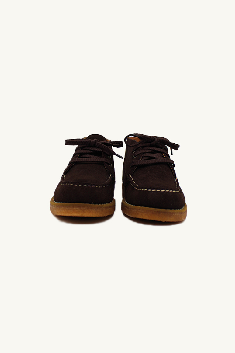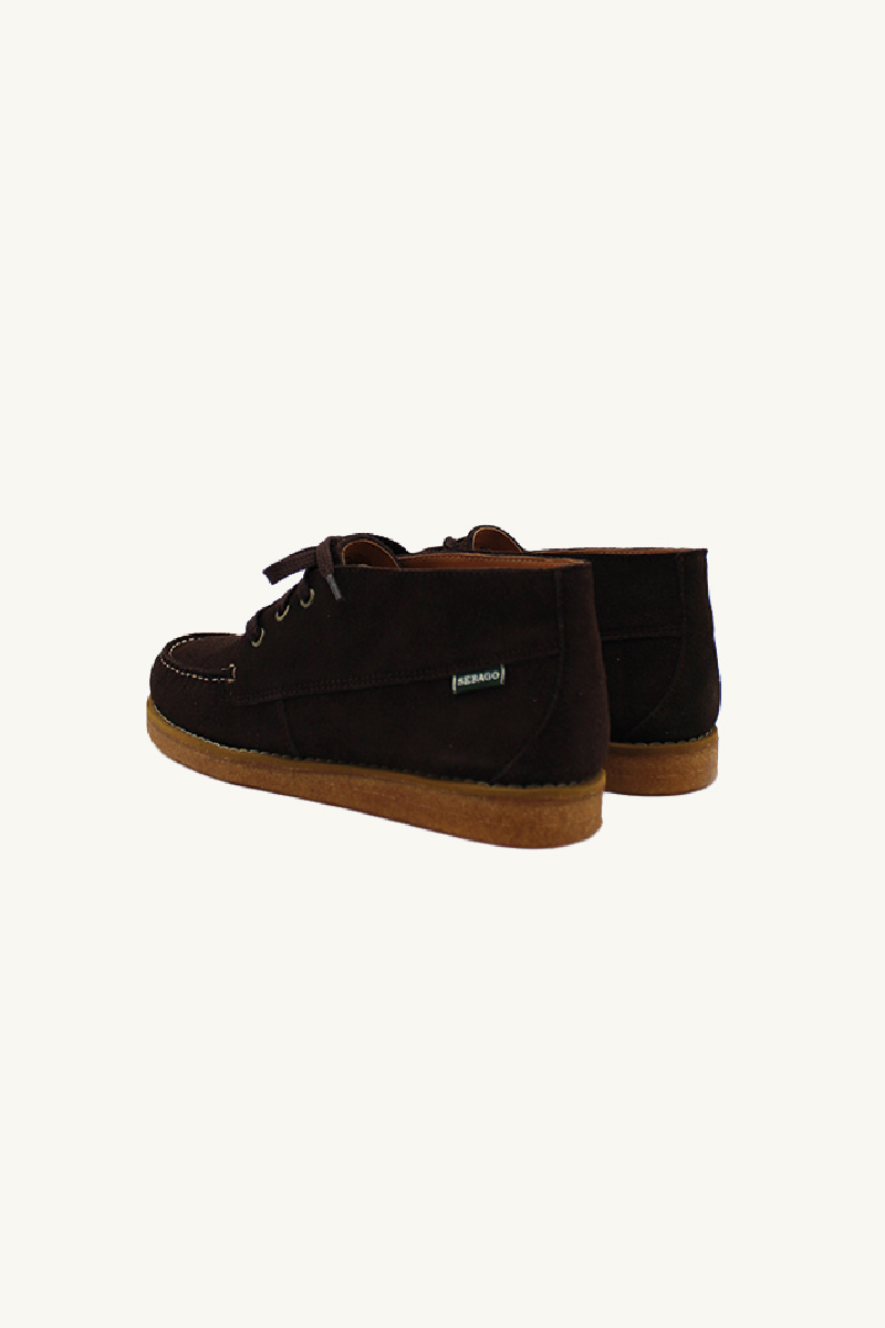 Pair of Sebago loafers in suede leather, Moka colors. Composed of a fine leather lining and flat laces in cotton and EVA (ethylene-vinyl acetate) sole to ensure optimal comfort.