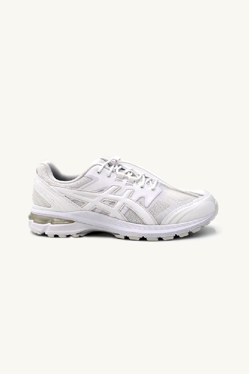 Asics X Comme Des Garçons Shirt Gel-Terrain trainer, white leather, mesh fabric, total white look, collaboration details on tongue label, quicklace fastening.