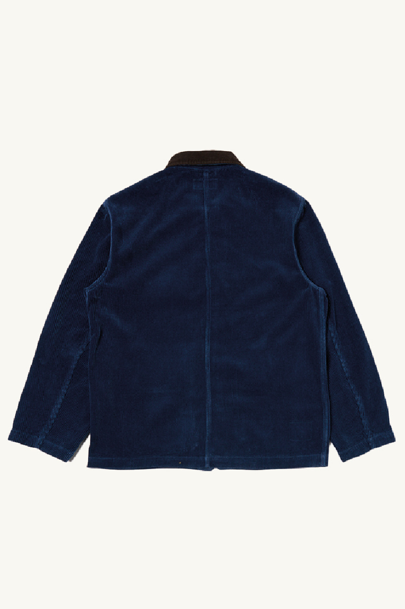 Utility jacket in corduroy, made of indigo-colored recycled cotton, from the brand Universal Works.