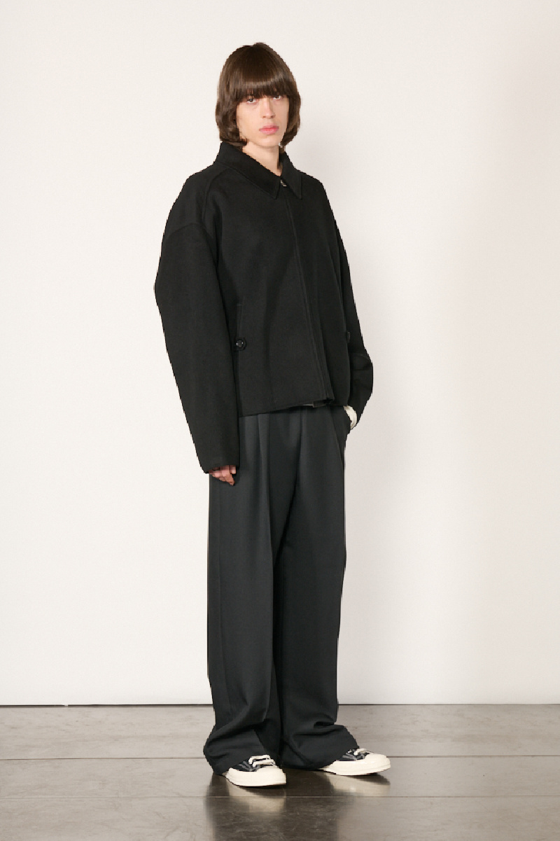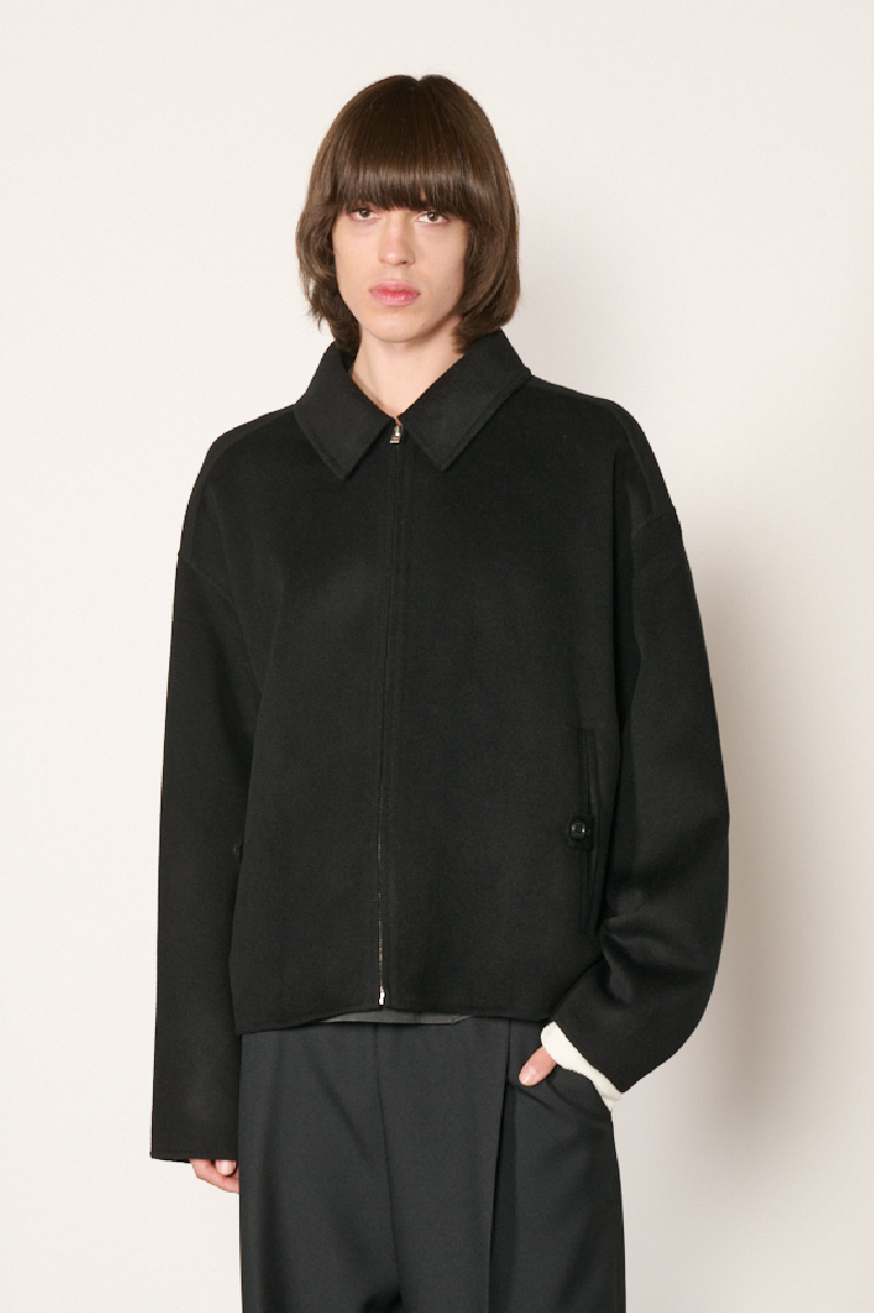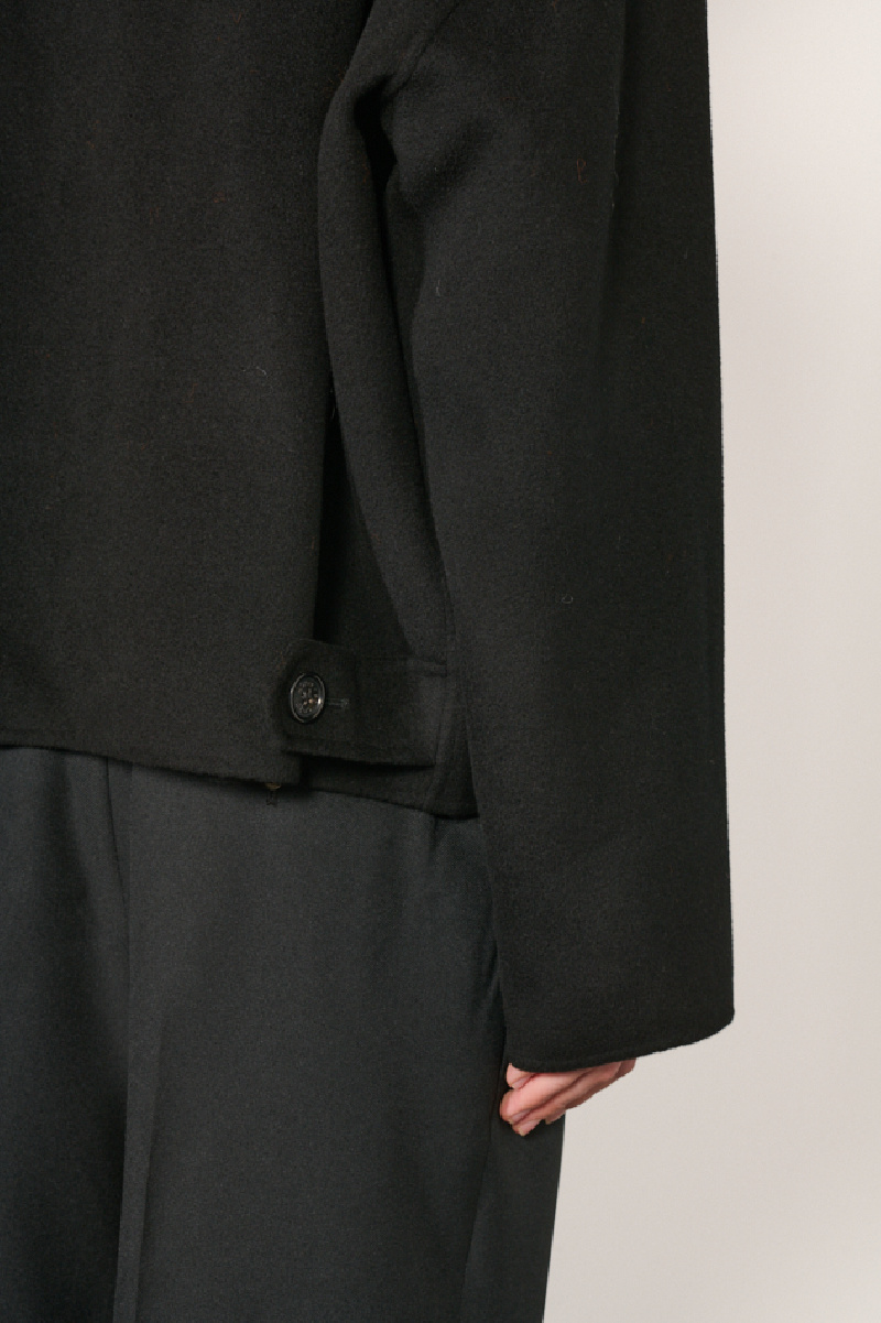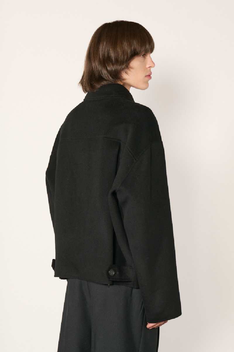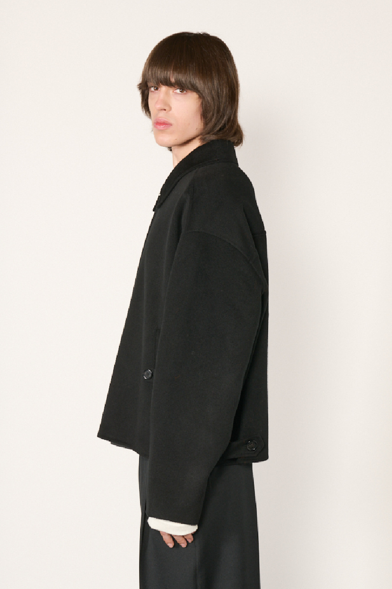 Short jacket made of black wool and cashmere, with a soft brushed surface, from the brand Acne Studios.